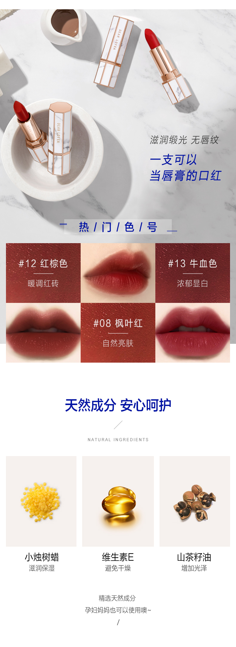 丽扬大理石口红女持久保湿平价小众ins高颜值细闪唇膏故宫学生款