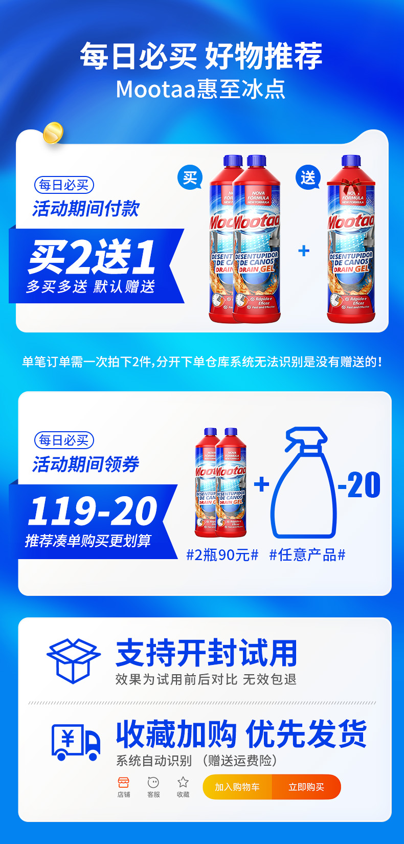 【欧洲进口】买2送1,宁丑的液体状,强劲的疏通力,日常保养使用,管道也能清新哦,堵塞物易分解,释放强劲水流。简单易操作~倒一倒,轻松疏通不伤下水管道【赠运费险】
