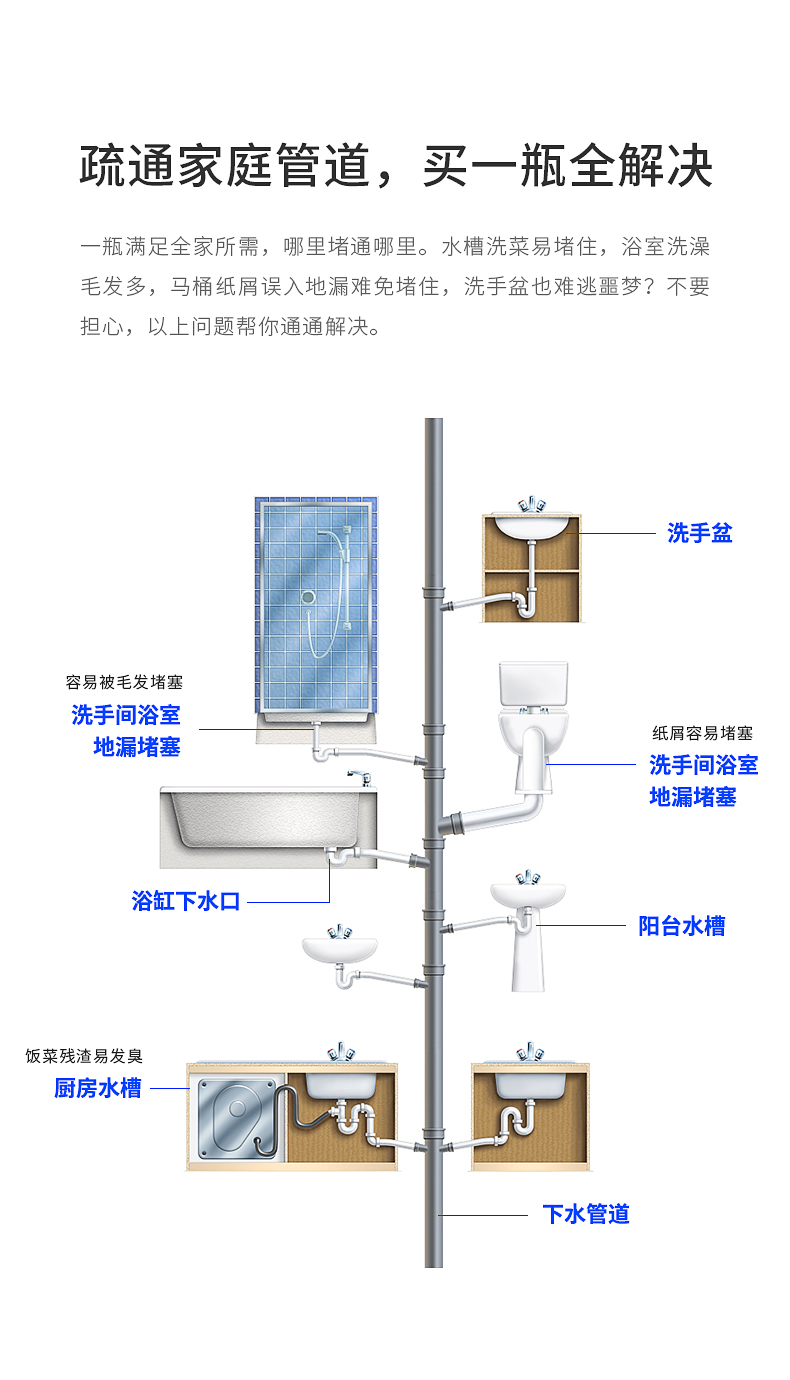 通厨房下水道管道疏通剂厕所油污堵塞强力清理溶解地漏除臭剂神器