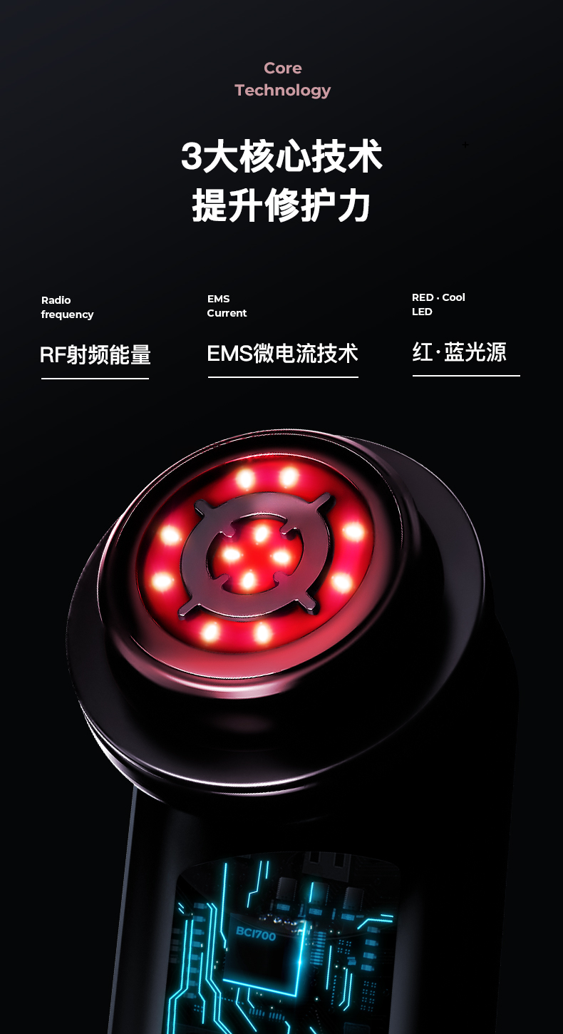 多功能彩光射频微电流美容仪,童颜机,七效合一,六分钟光子三大核心技术提升修护。