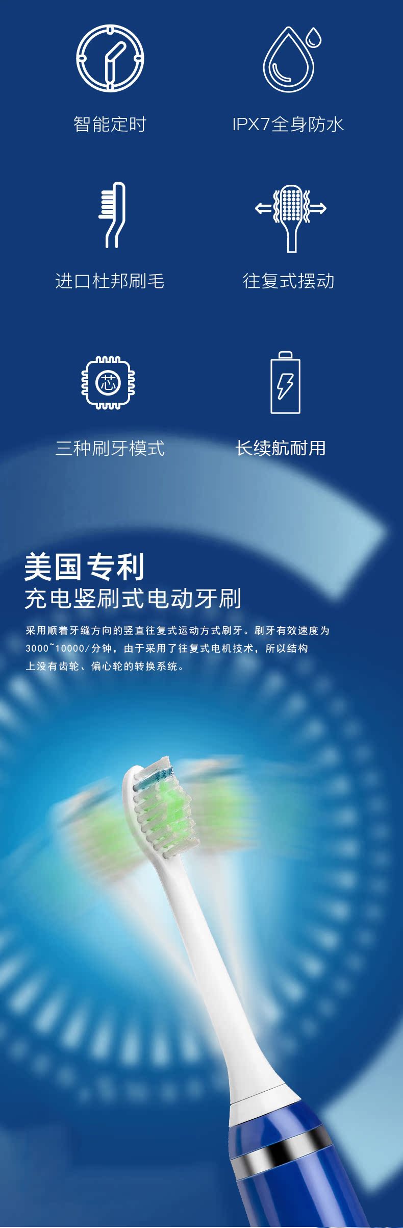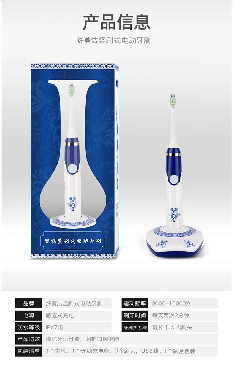 【纤美洁旗舰店】电动牙刷全自动软毛竖刷!送无线充底座+进口刷头一个,全身水洗,高效清洁无死角,清新口气,洁白牙齿,【赠送运费险】
