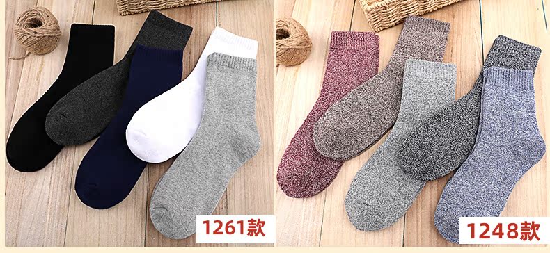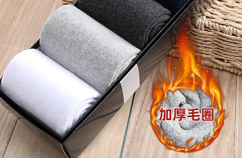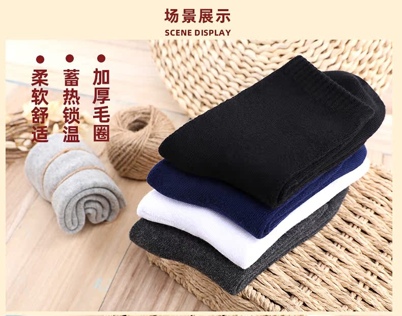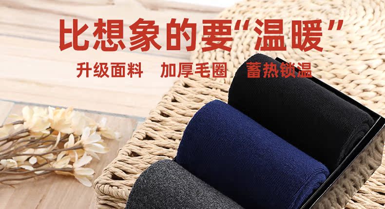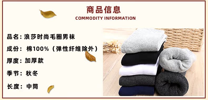 浪莎袜子男士纯棉加厚秋冬季中筒男袜加绒保暖毛巾长袜冬天全棉袜
