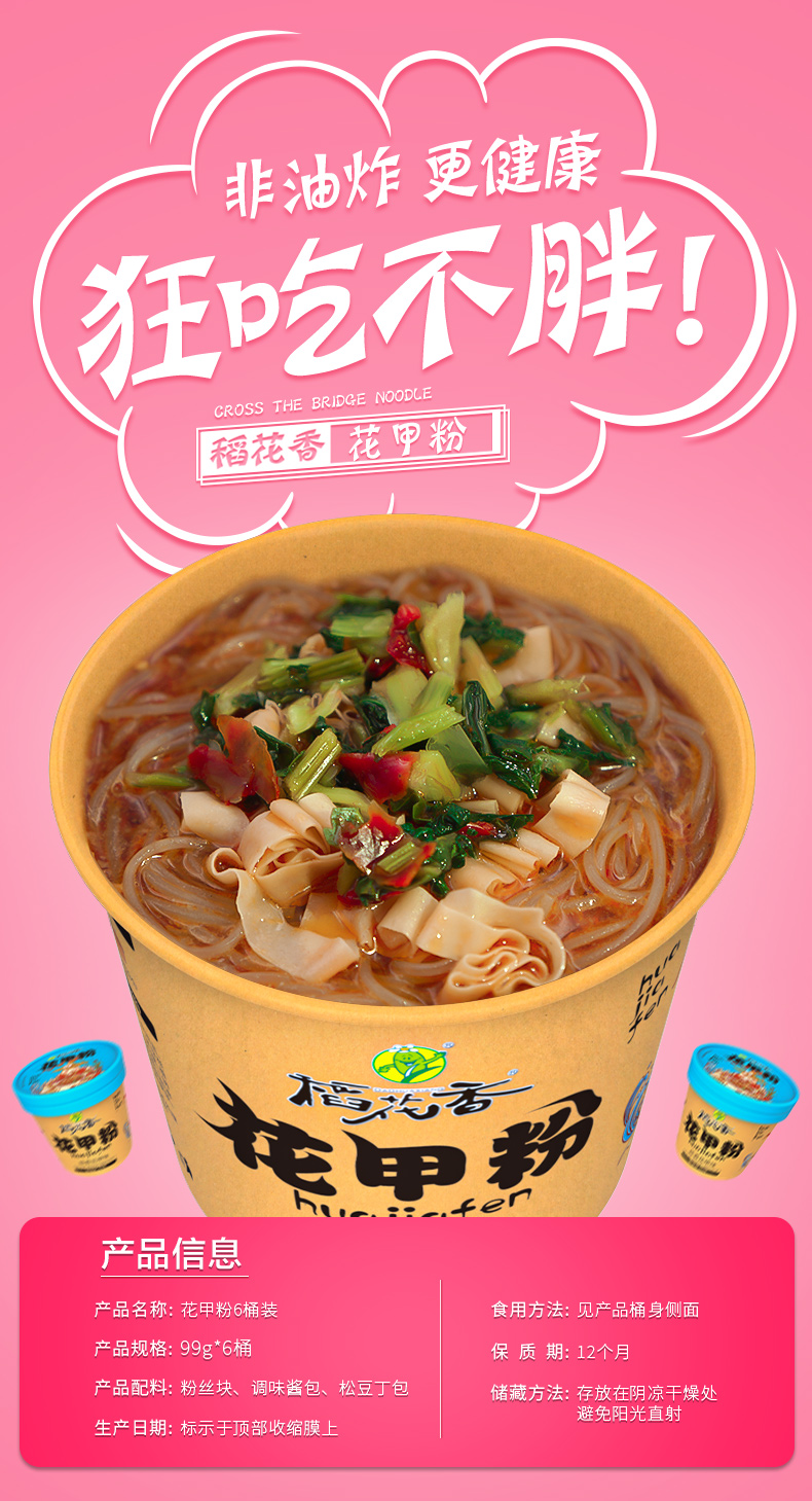 稻花香 花甲粉丝速食粉面方便粉丝米线即食网红食品夜宵泡粉6桶装