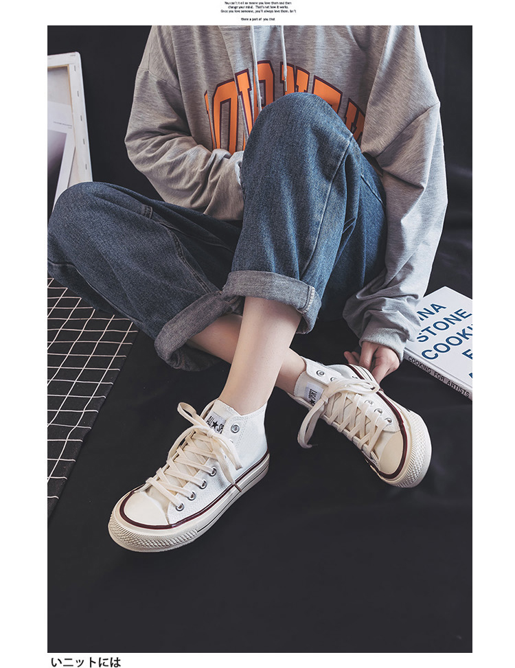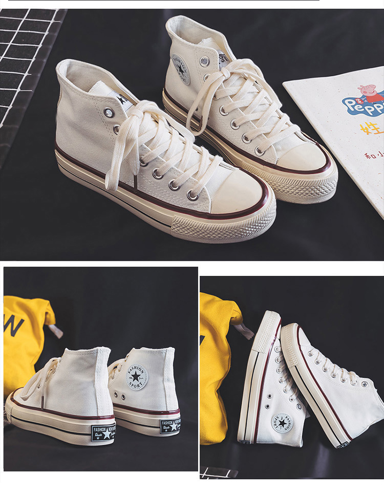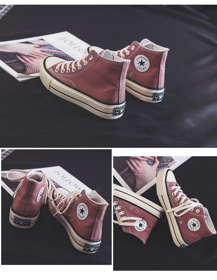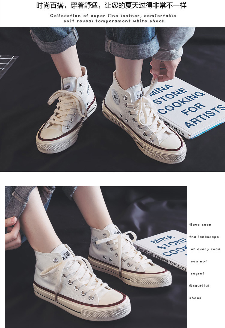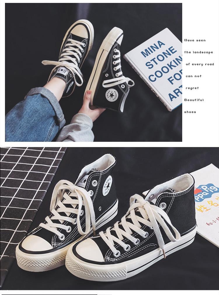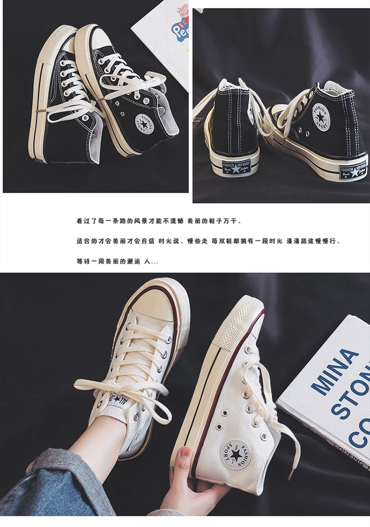 珊堡加绒高帮帆布鞋女秋冬韩版ulzzang潮黑白学生原宿潮2019新款