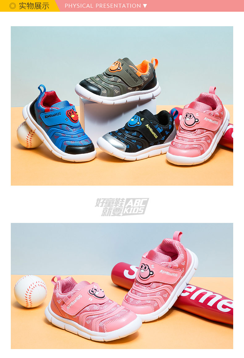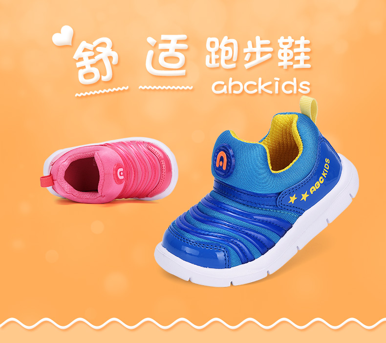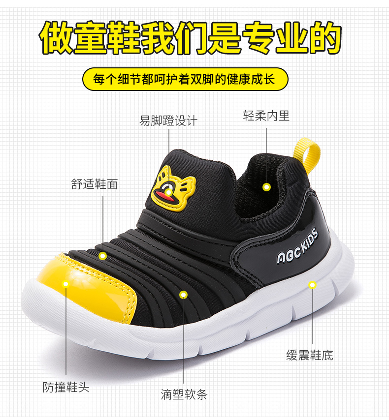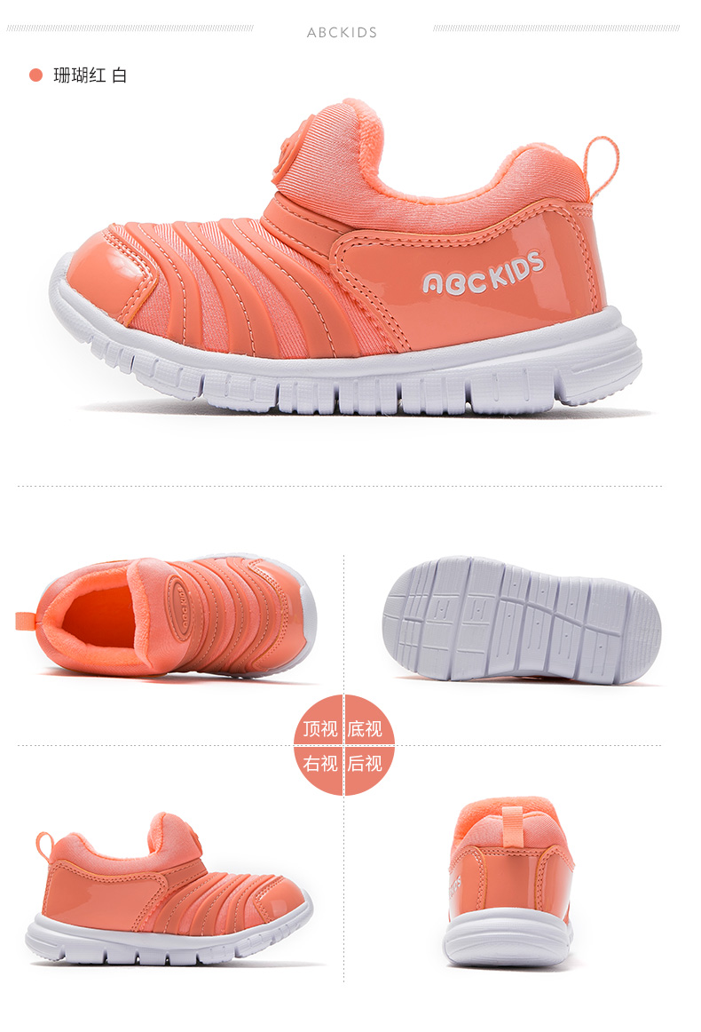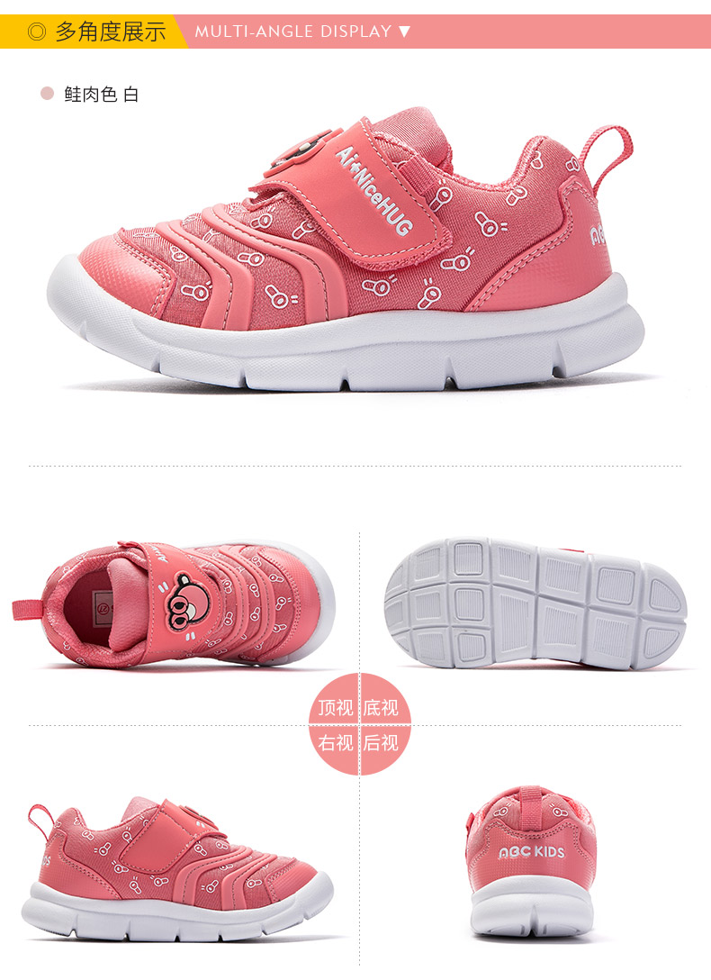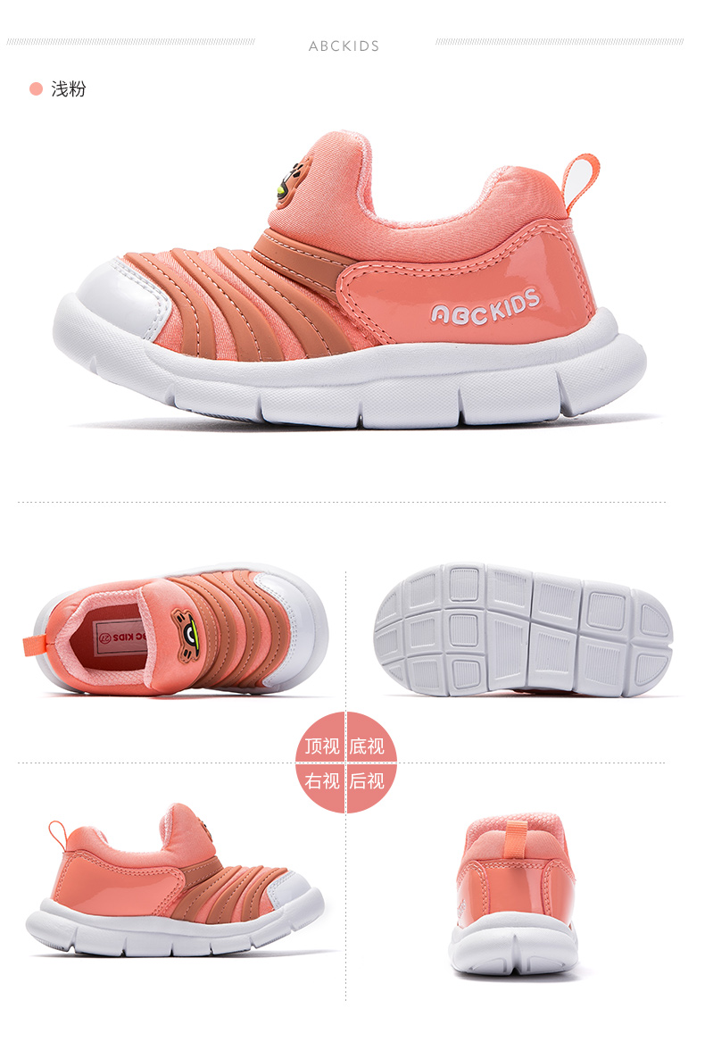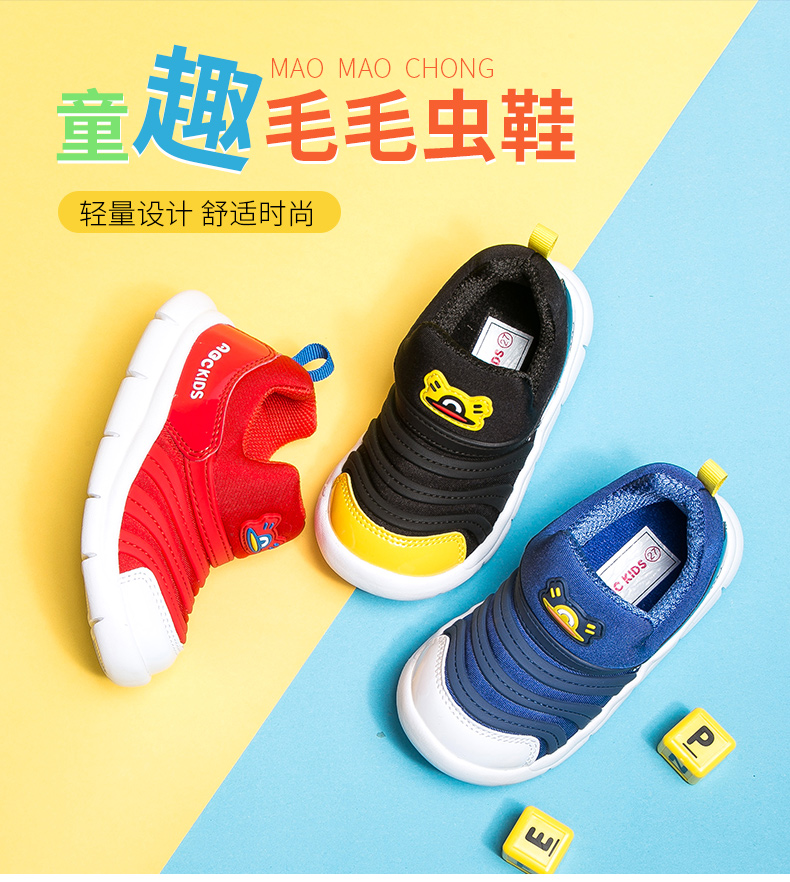 abc童鞋宝宝毛毛虫鞋儿童运动鞋2019秋季新品软底防滑男女童网鞋