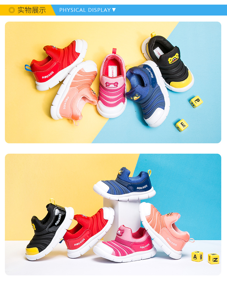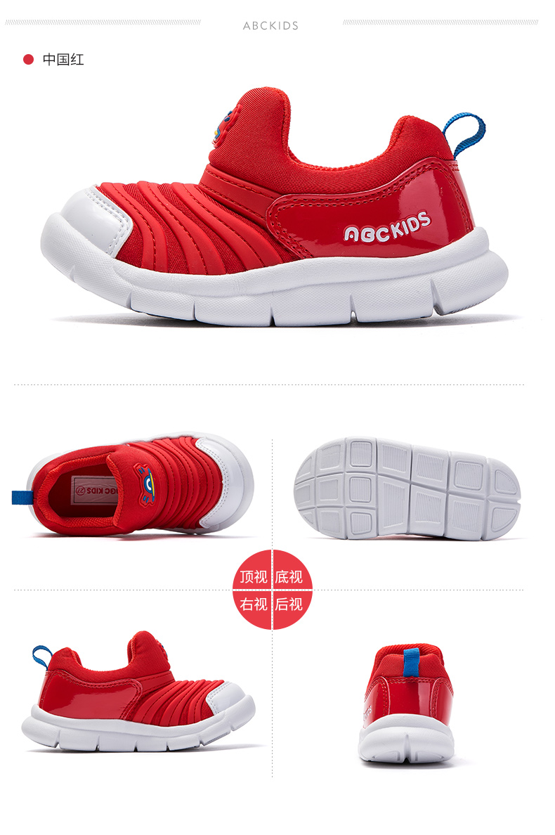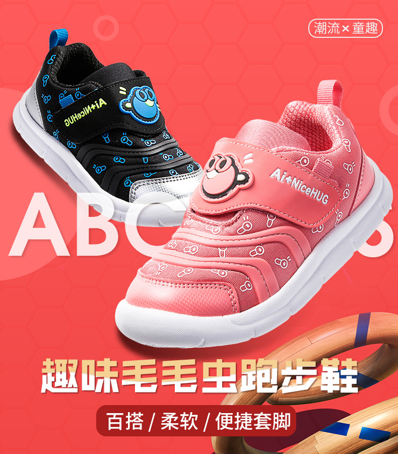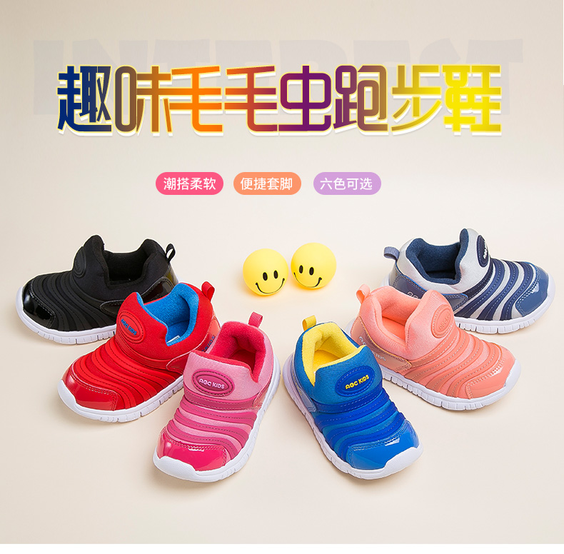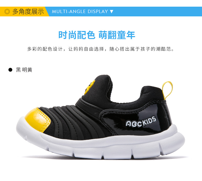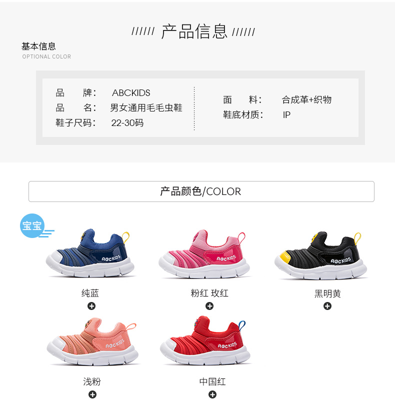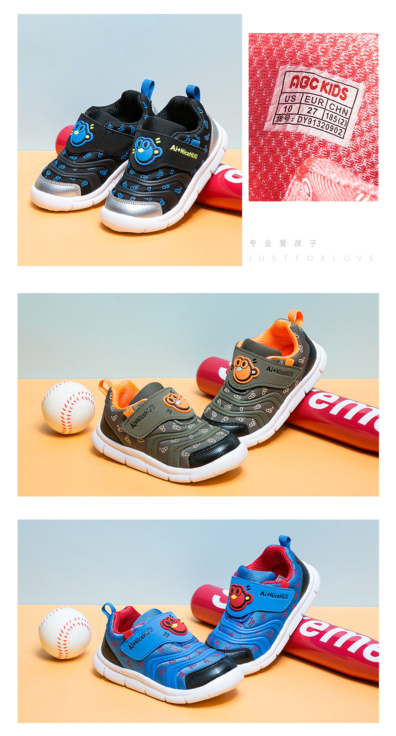 abc童鞋宝宝毛毛虫鞋儿童运动鞋2019秋季新品软底防滑男女童网鞋