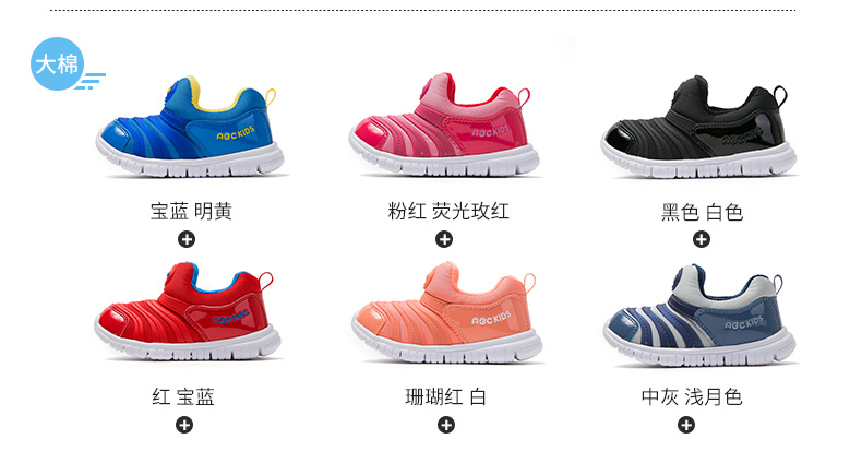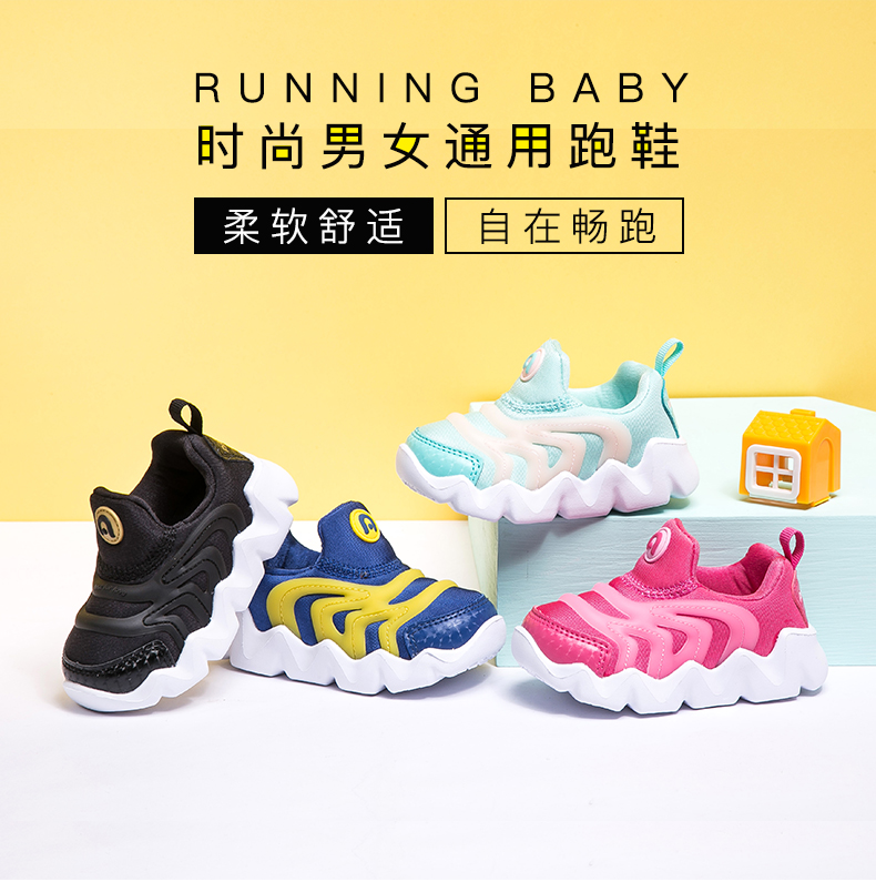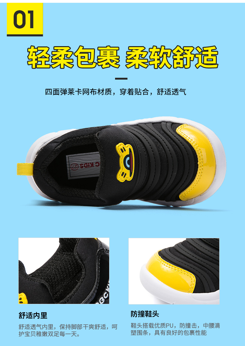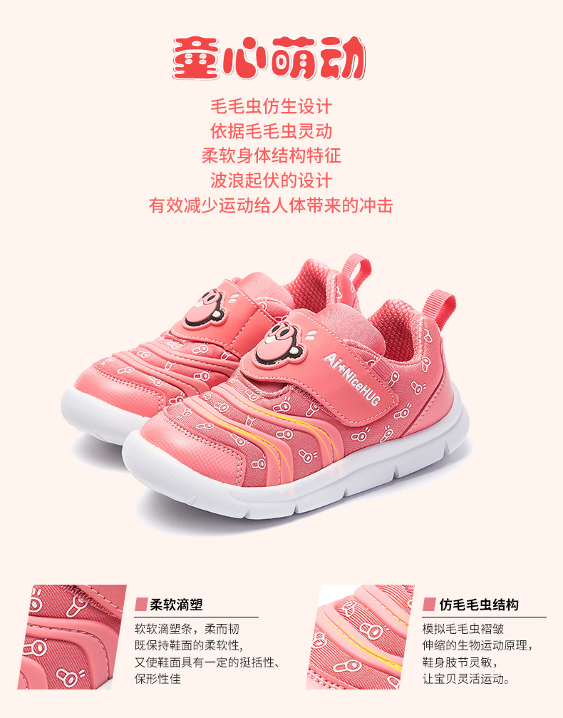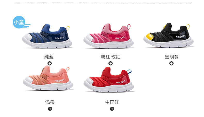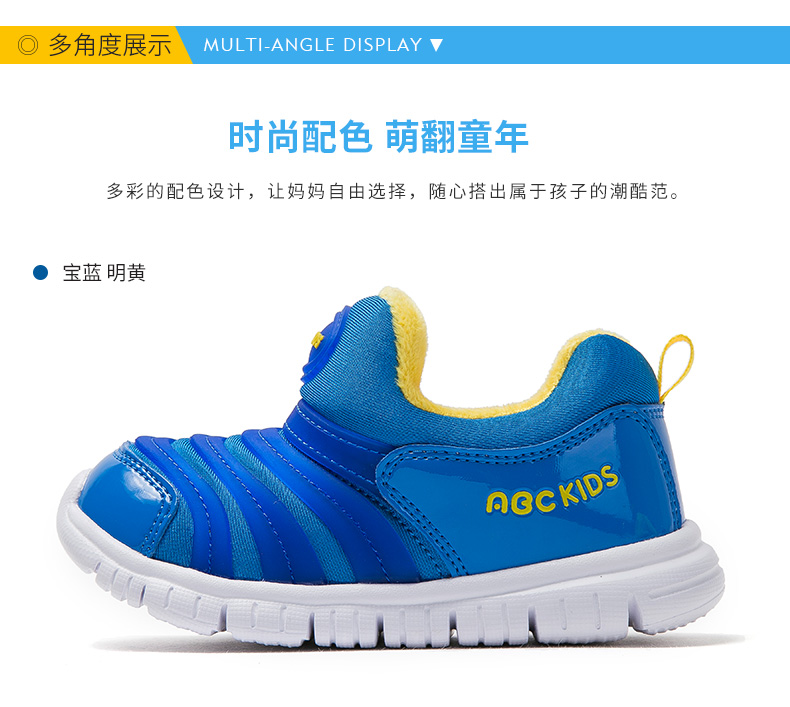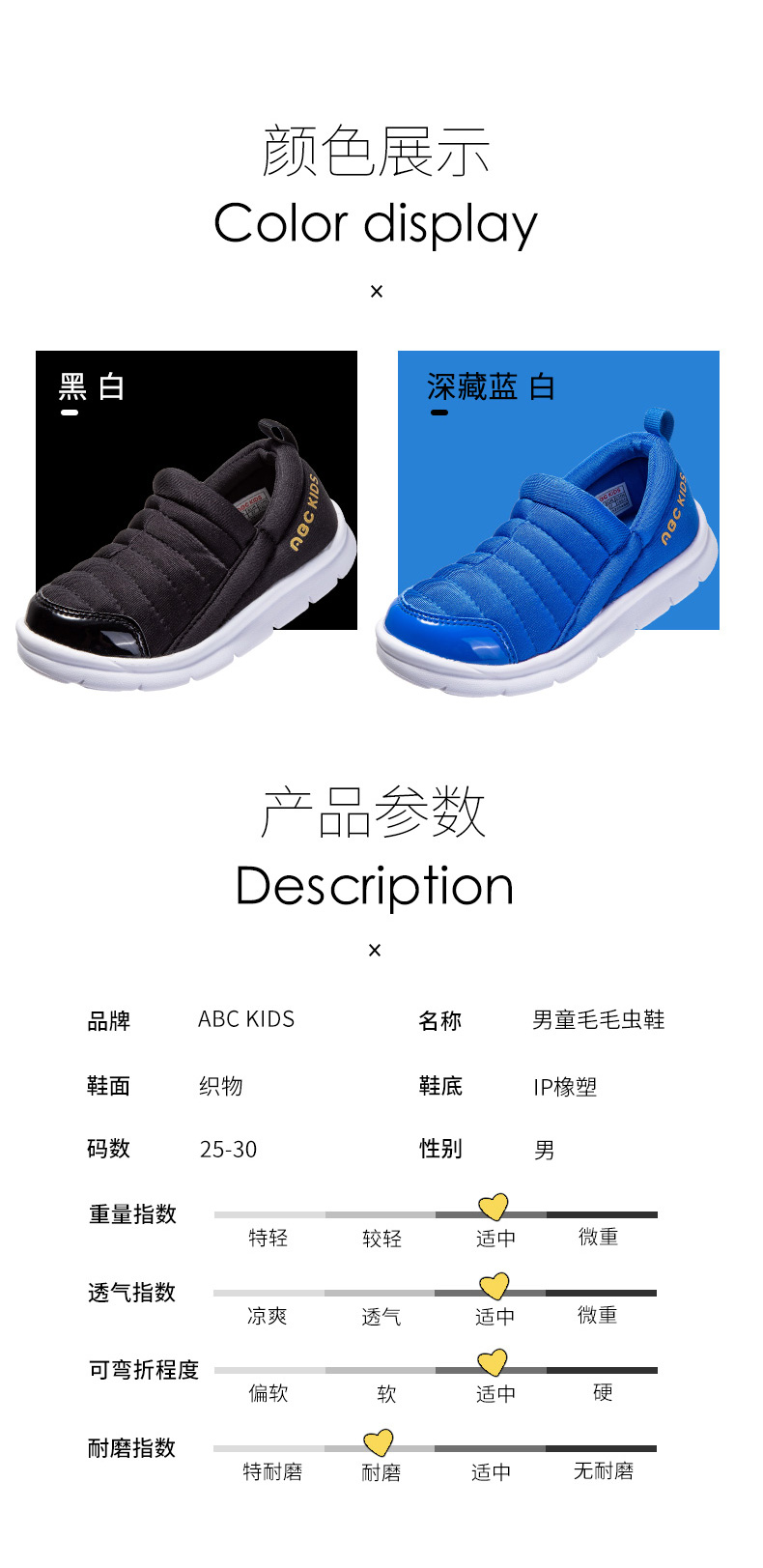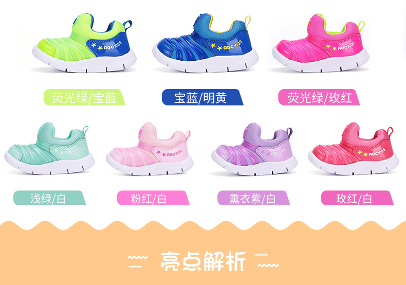 abc童鞋宝宝毛毛虫鞋儿童运动鞋2019秋季新品软底防滑男女童网鞋