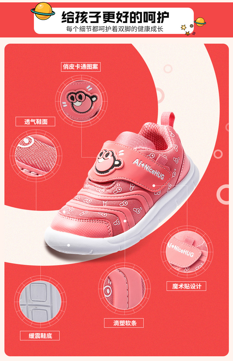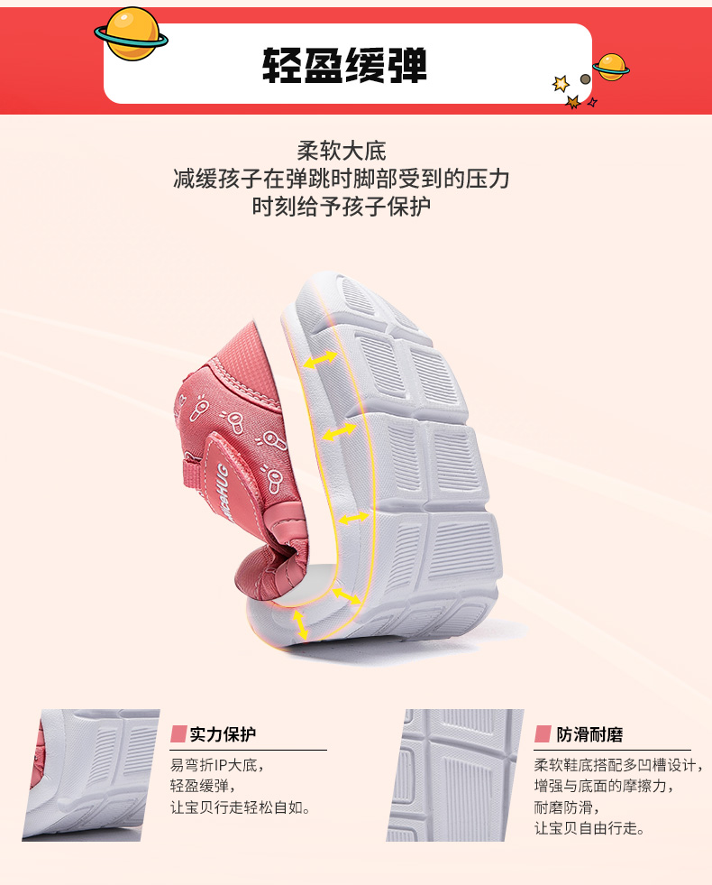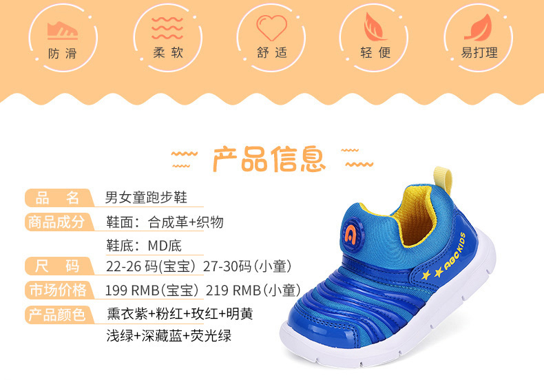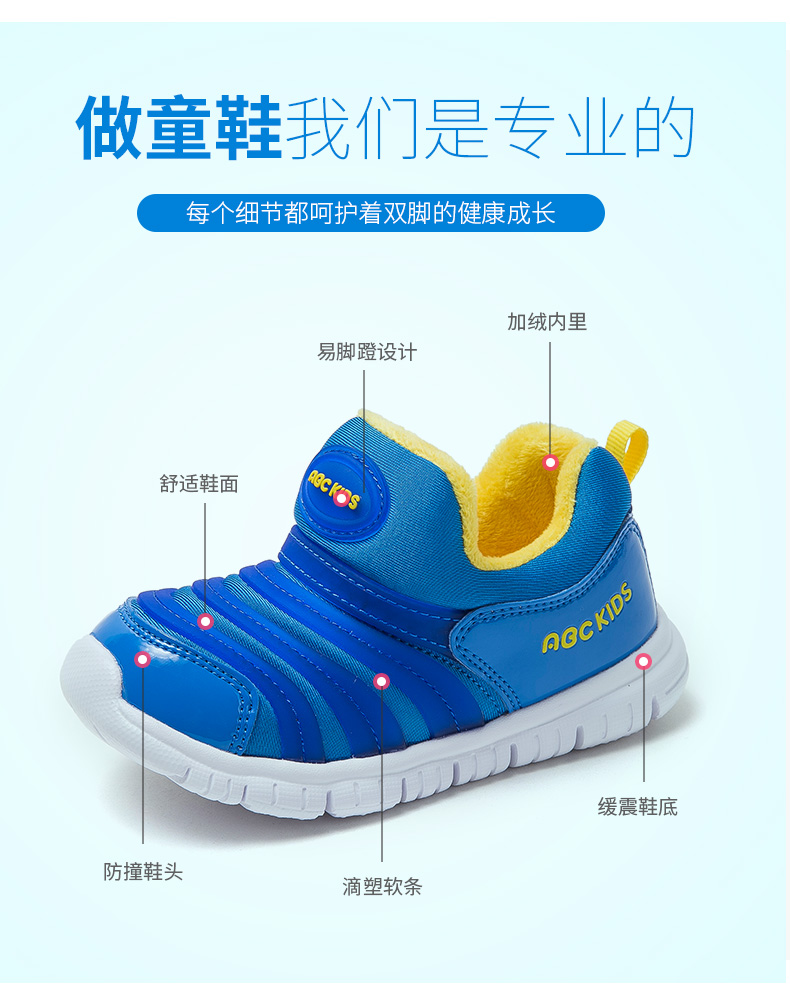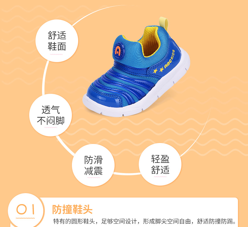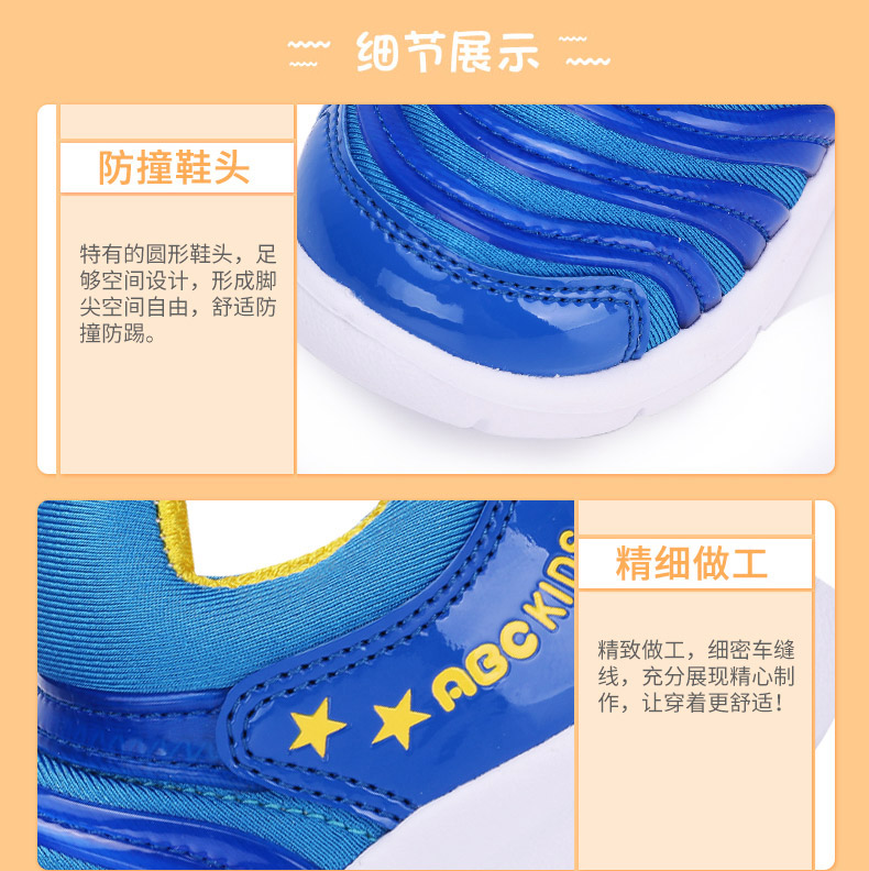 休闲时尚,防滑耐磨,防撞防踢鞋头,科学弯曲,轻便护足,干爽舒适,有效排汗,个性设计,释放孩子双脚
