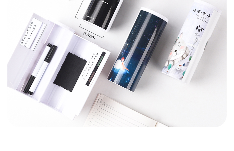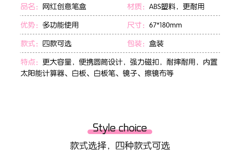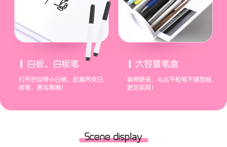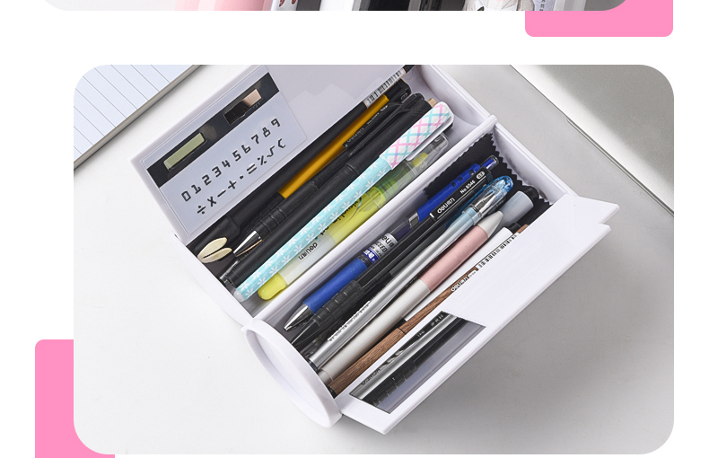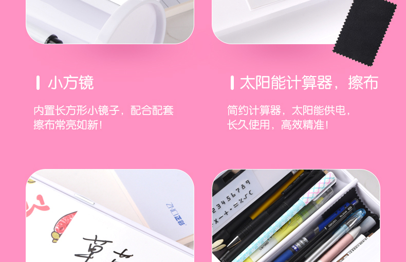递乐抖音同款文具盒,网红笔盒多功能大容量,内含计算器,白板,镜子,抹布,白板笔等,男女孩简约韩版,小清新可爱笔袋,韩国创意个性萌卡通小学生用铅笔盒
