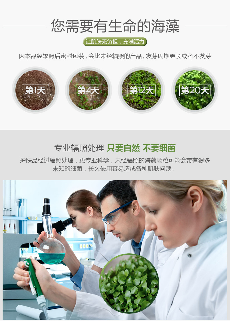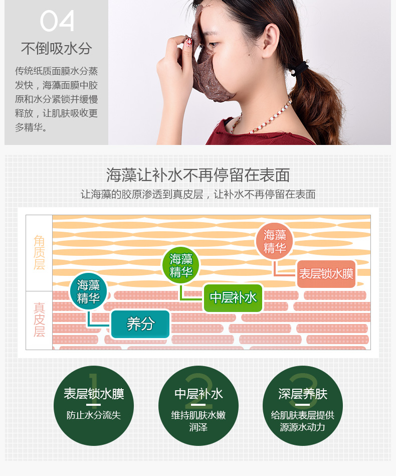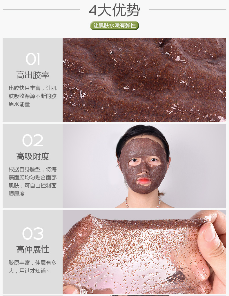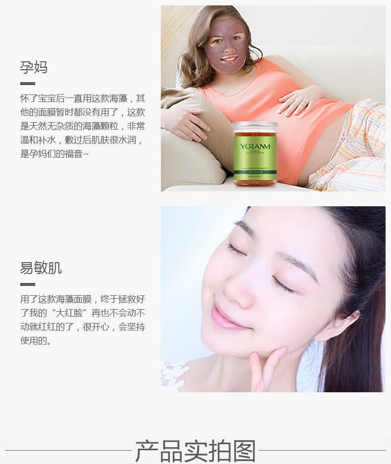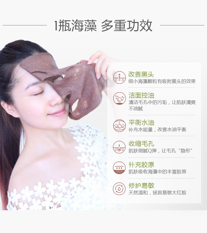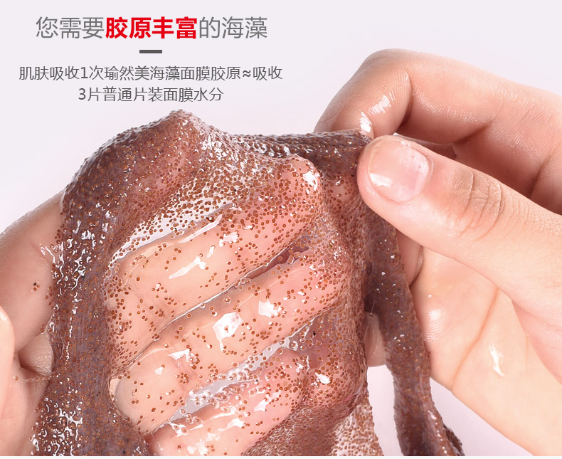 天然海藻面膜,深层补水,温和舒缓,提亮肤色,持久锁水,脆弱肌肤和孕妇可以放心使用,无化学防腐剂,让我们一起见证植物补水吧。