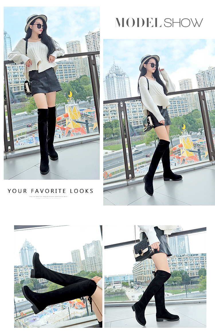 2019秋冬百搭修身显瘦粗跟长筒过膝靴,时尚靓丽,秋冬新款,防滑橡胶底,高跟平底可选,过膝设计,筒围可拉伸,易脱穿,高颜值显瘦百搭款,快速打造大长腿!!