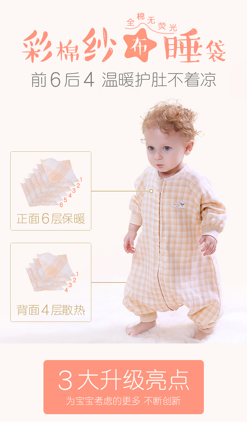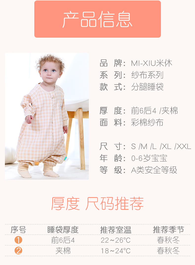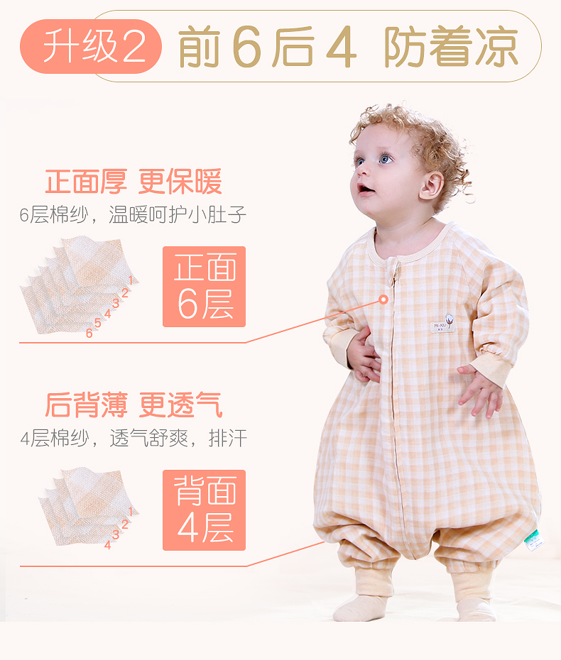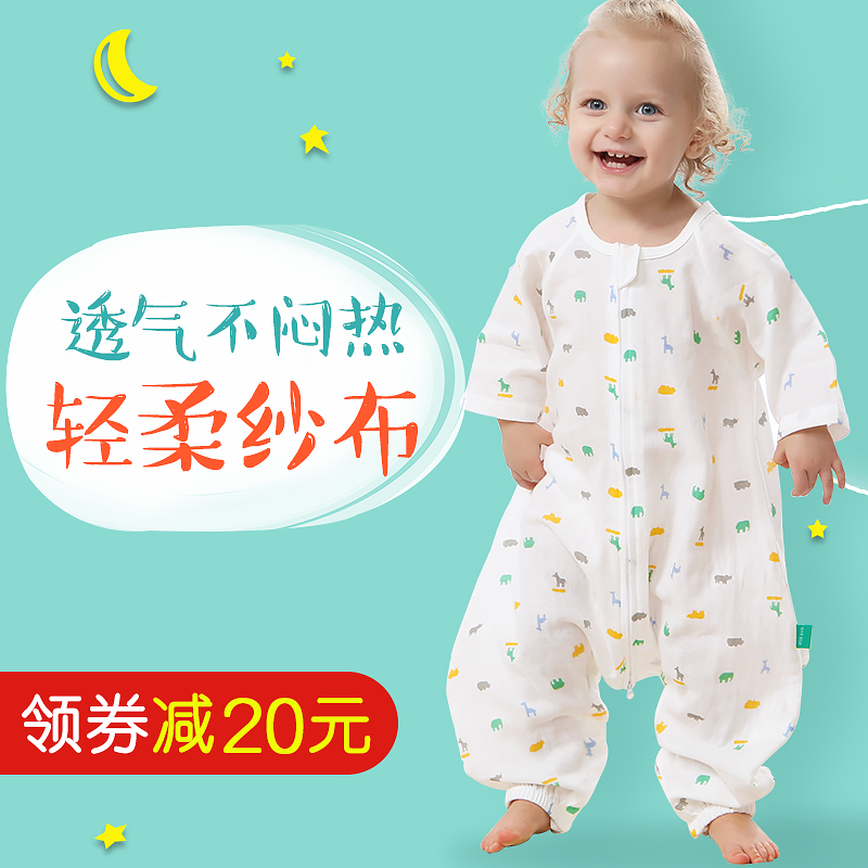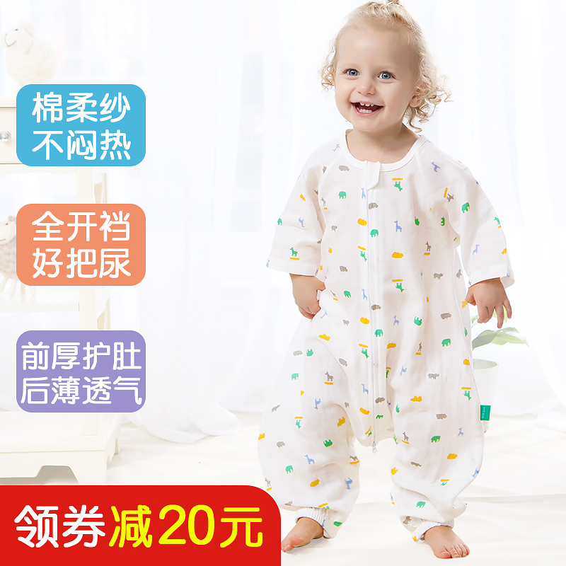 米休纱布婴儿睡袋春秋薄款四季通用宝宝冬夏季防踢被儿童分腿睡衣,护肚透气,轻柔纱布夹棉,天猫正品,夏季新款,柔软舒适,清爽透气,防拉伤设计,可爱卡通图案,宝宝更喜欢,0-3岁宝宝都可以