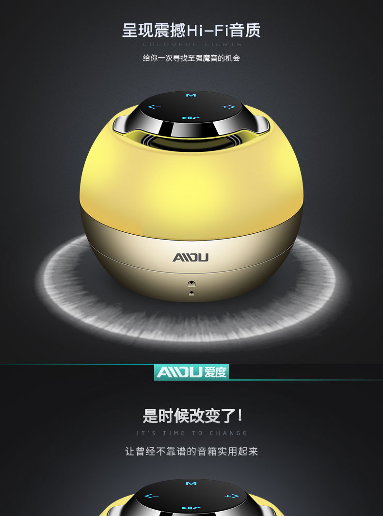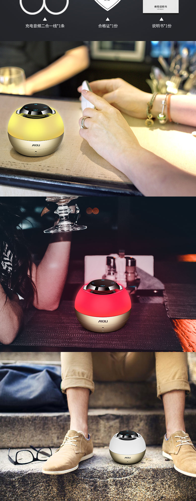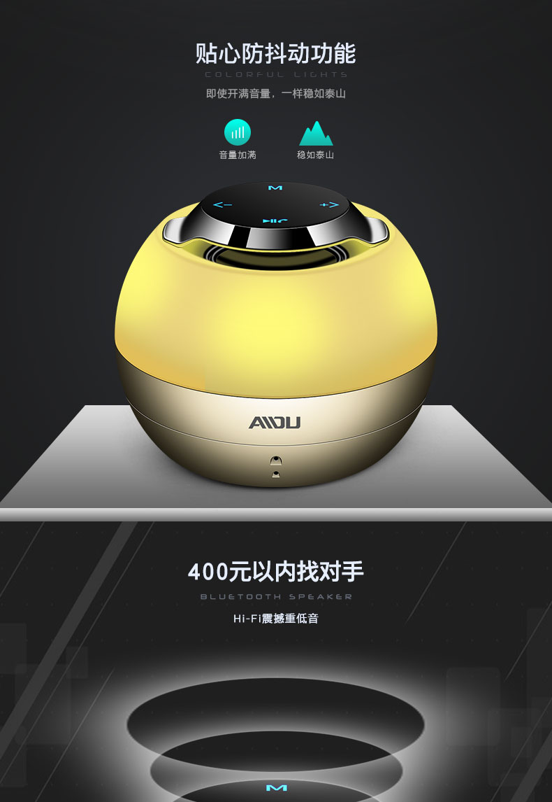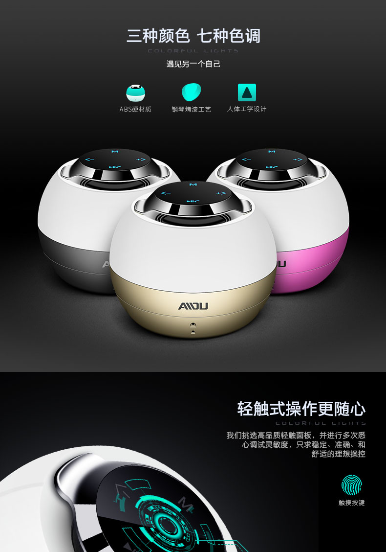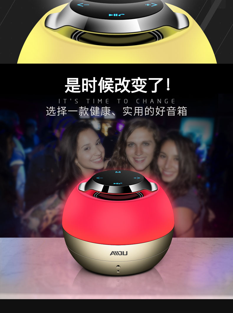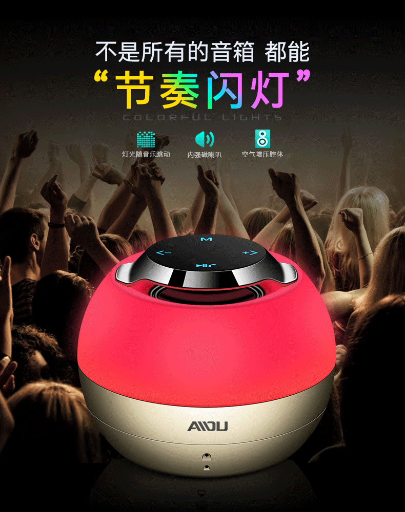 爱度智能蓝牙迷你防抖音响,音频充电二合一,外观小巧,环保钢琴烤漆工艺,同轴共振喇叭设计,震撼HIFI音质,音质柔美,轻触控七色闪灯,个小声大随你嗨,灯光随音乐舞动【赠运费险】~