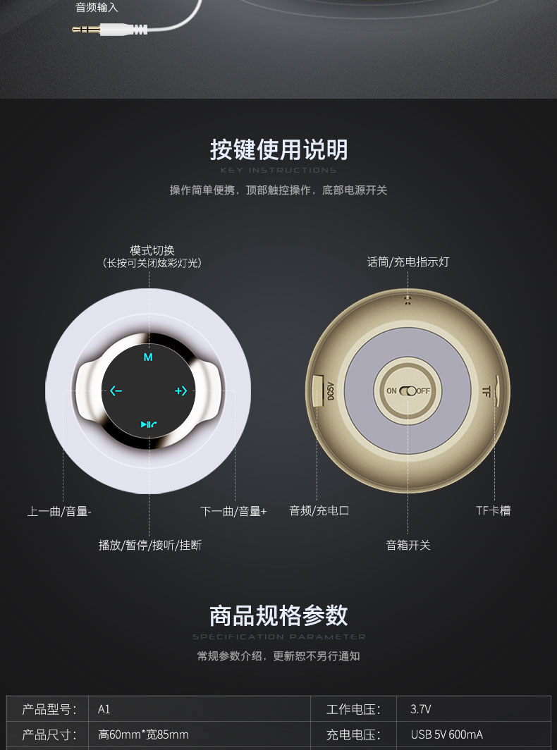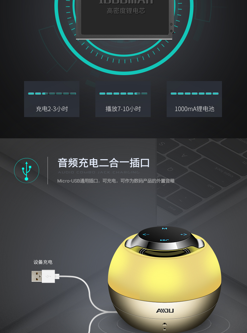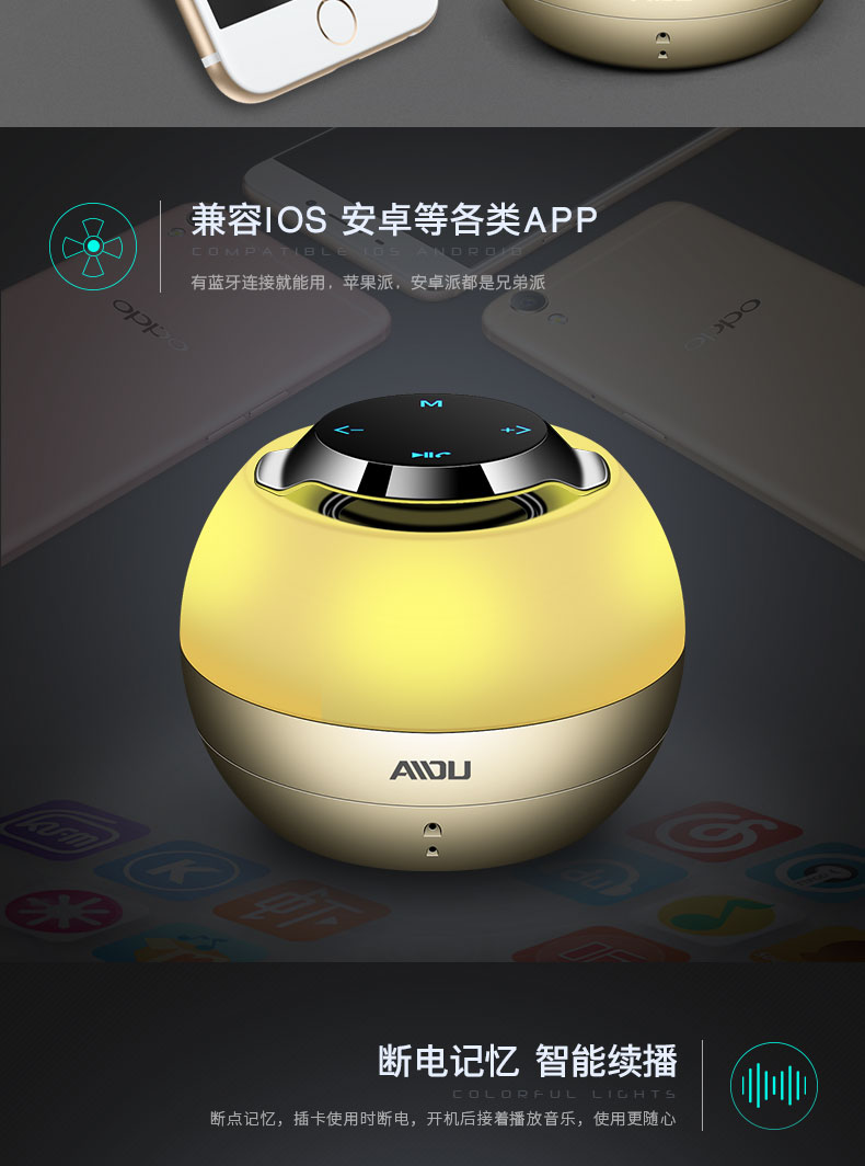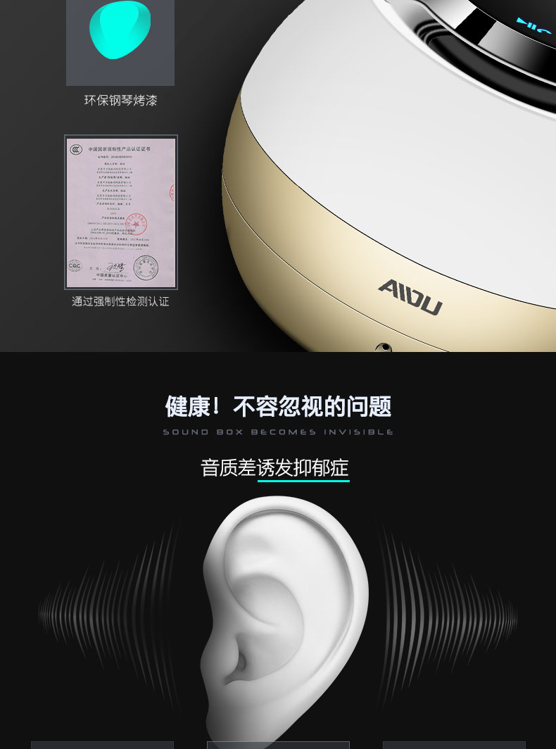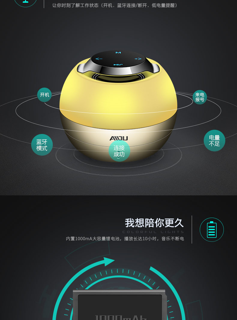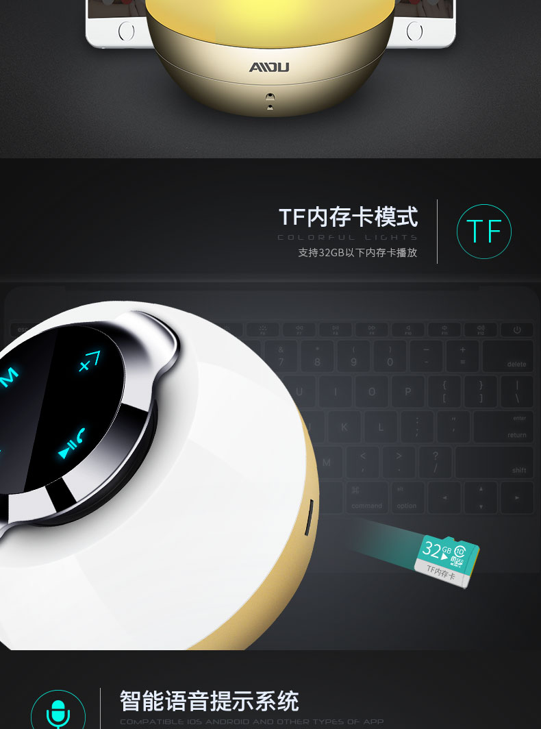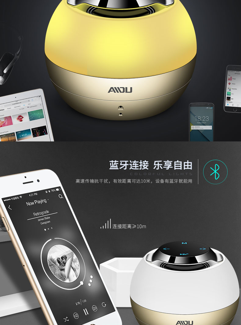 爱度智能蓝牙迷你防抖音响,音频充电二合一,外观小巧,环保钢琴烤漆工艺,同轴共振喇叭设计,震撼HIFI音质,音质柔美,轻触控七色闪灯,个小声大随你嗨,灯光随音乐舞动【赠运费险】~