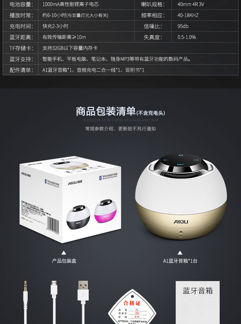 AIDU爱度A1蓝牙音箱低音炮无线迷你小型苹果音响手机影响家用大音量户外超大便携式小钢炮微信收钱语音播报器
