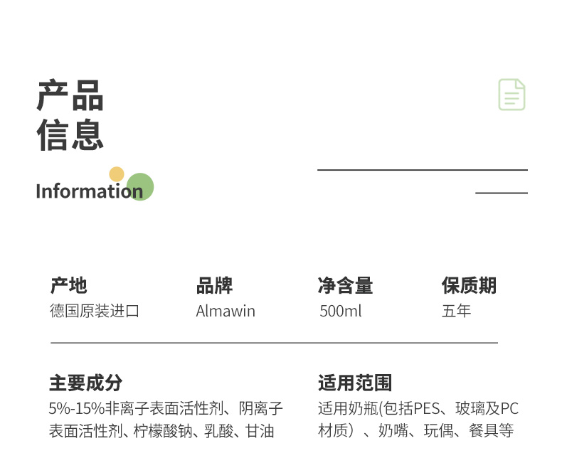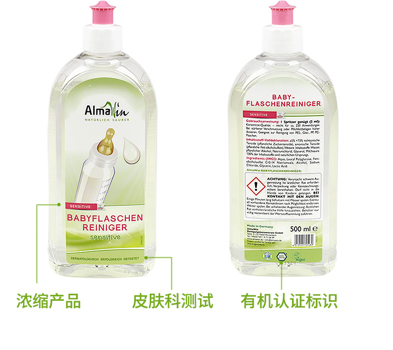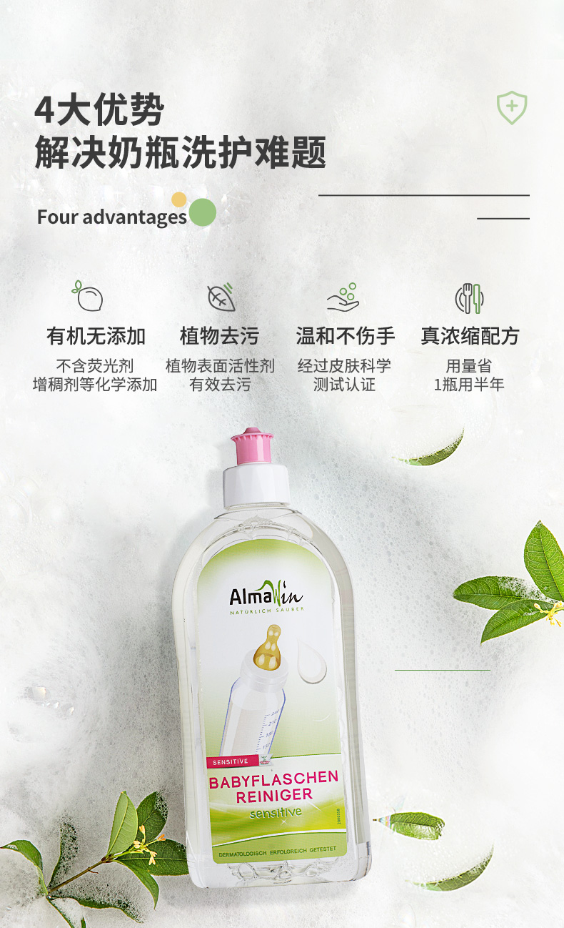 AlmaWin德国进口有机奶瓶清洗剂宝宝婴儿餐具玩具果蔬浓缩清洗液