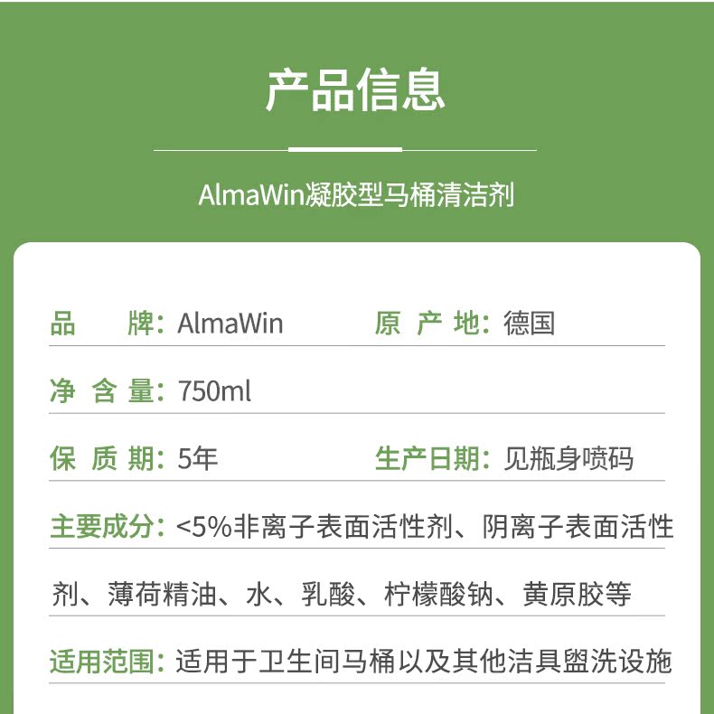 AlmaWin德国进口凝胶马桶厕所清洁剂除臭去异味洁厕灵液体除垢剂