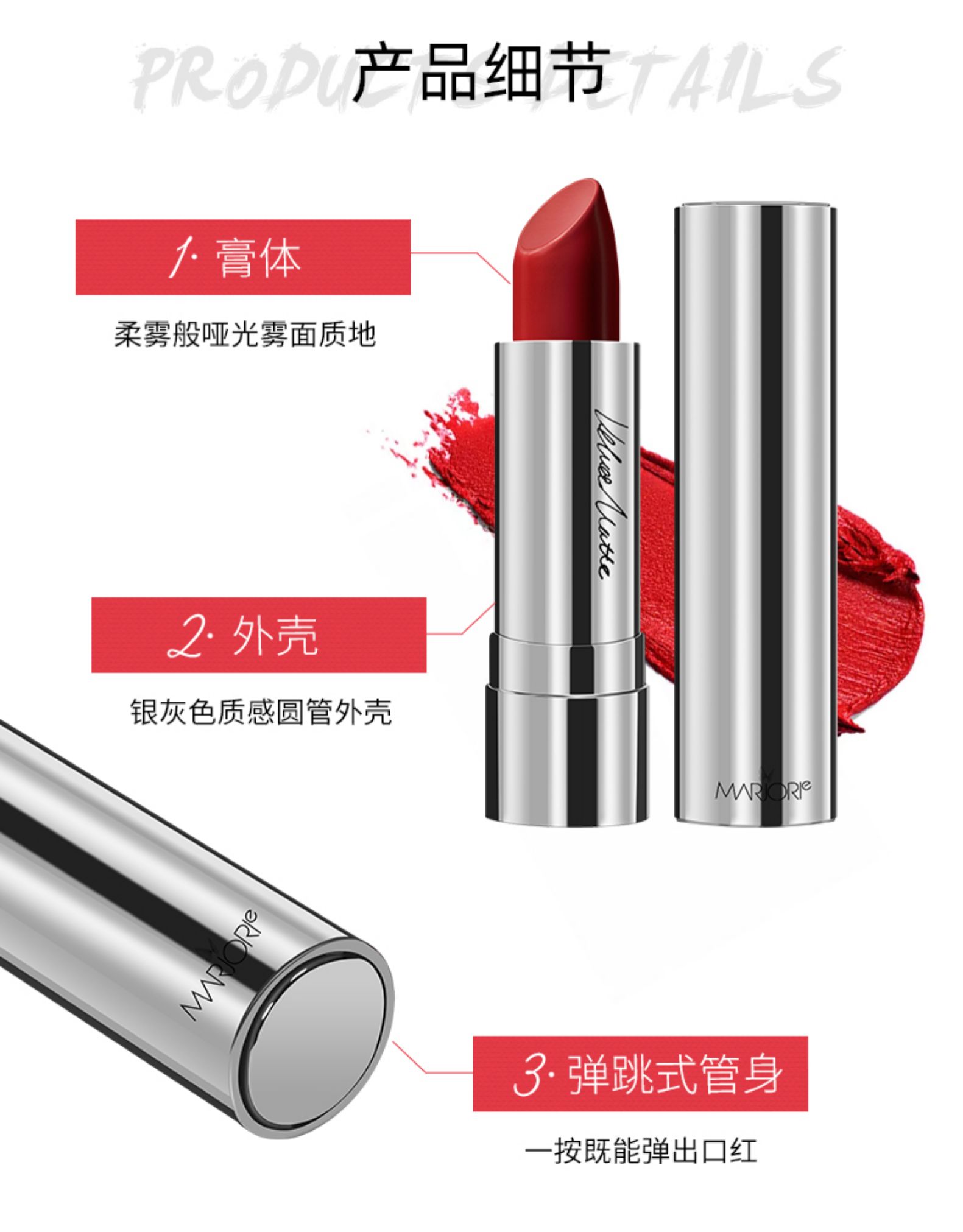 玛乔丽/Marjorie 奢润丰盈唇膏 滋润亮光口红 显色持久保湿不拔干