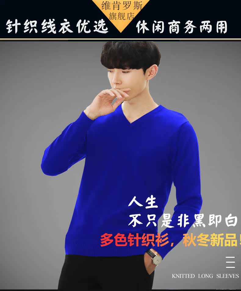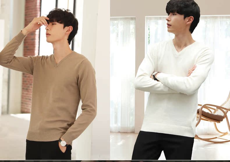 秋冬款针织衫毛衣男潮流修身针织线衣V领打底衫纯色加绒针织毛衣