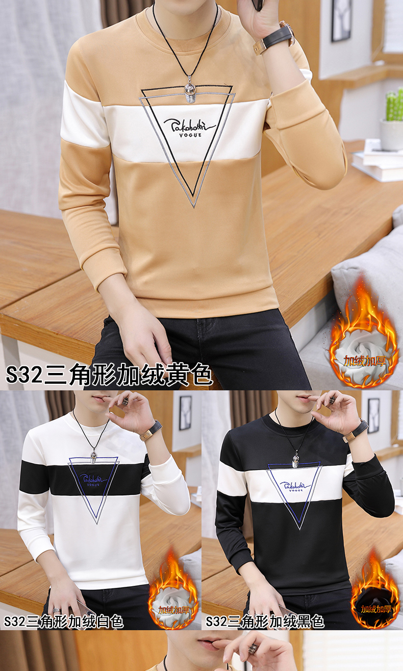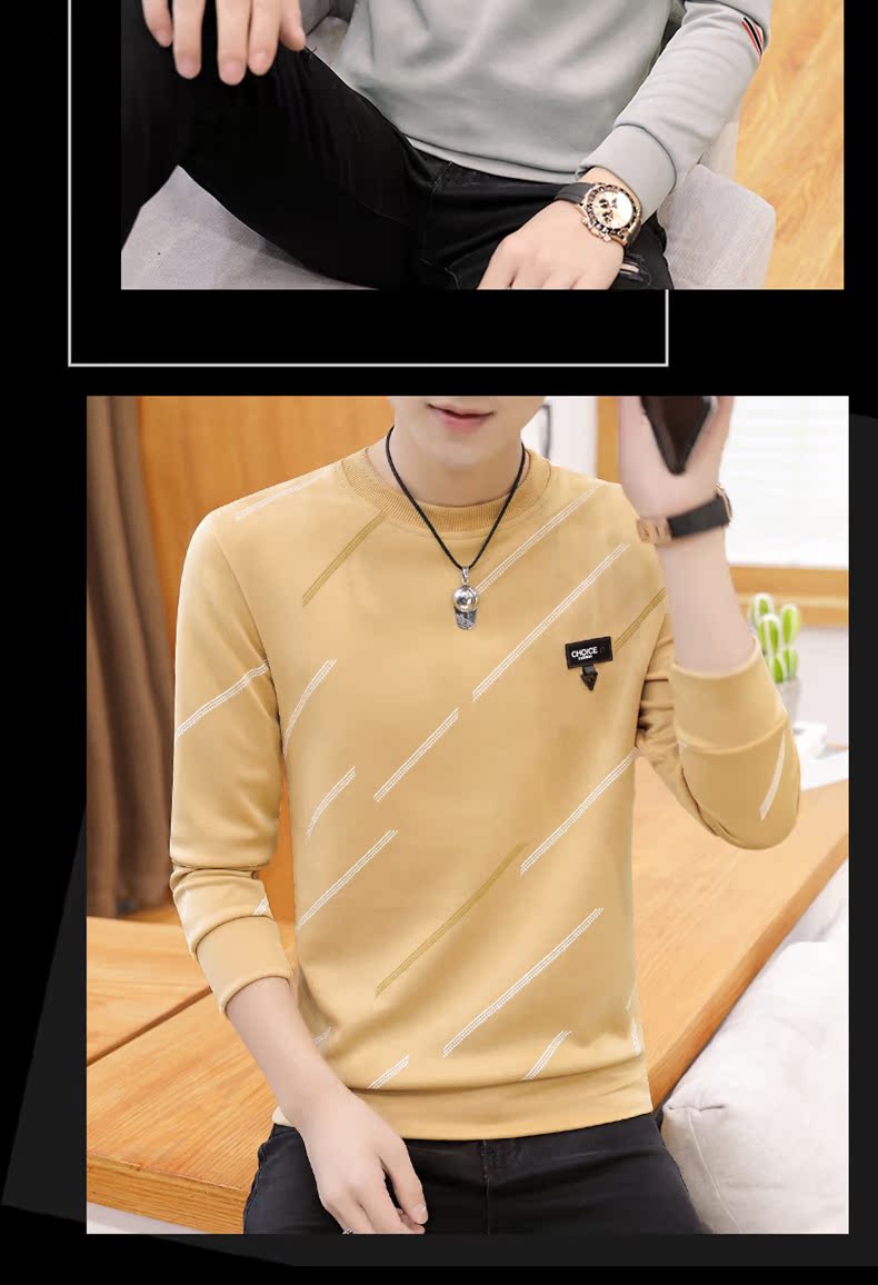 秋季长袖t恤男士修圆领套头卫衣潮流男装上衣青年韩版体恤打底衫