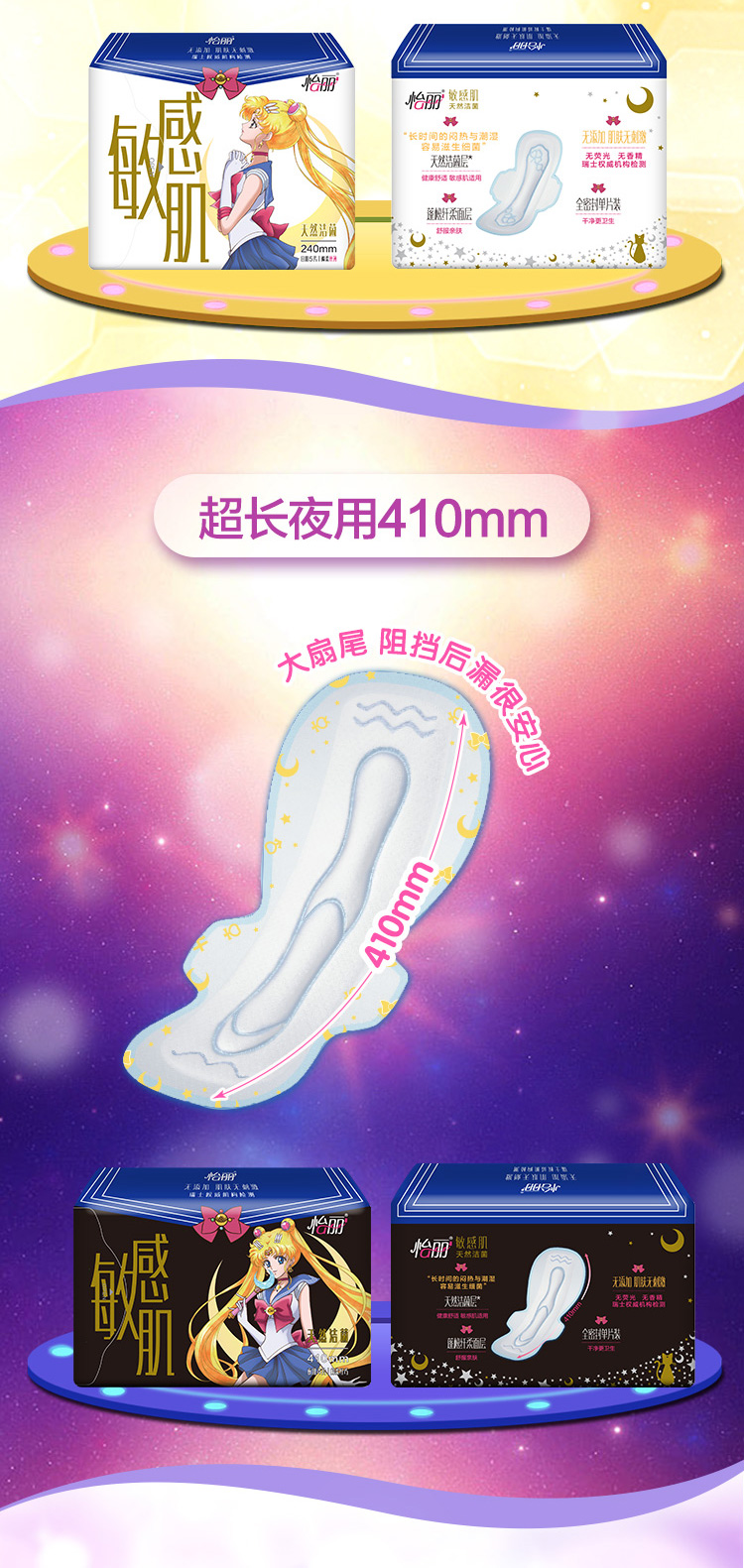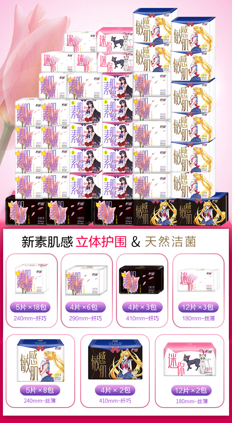 【天猫超市,怡丽与美少女战士跨界合作定制款234片卷后只要89平均0.3元一片聚优惠】包装超梦幻,代表月亮,消灭经期烦恼!贴心的七天周期组合装,敏感肌无添加,用得更安心!