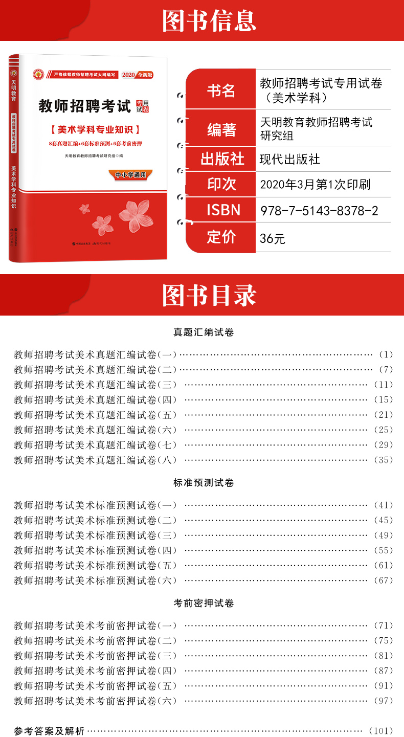 【天猫正品】天明2019专业知识高分题库+历年真题试卷+掌中宝。全套2本,美术教师招聘,考编考试用书通用版。