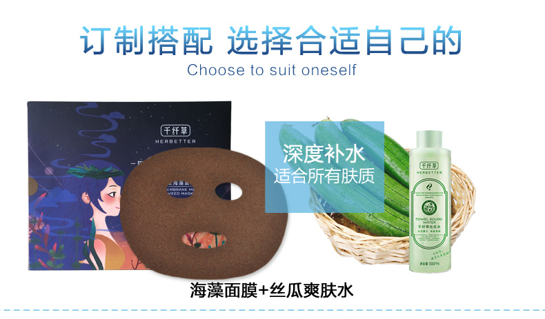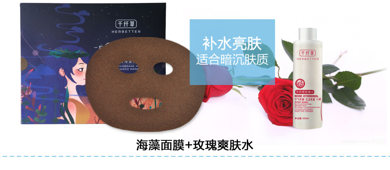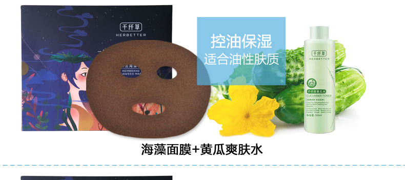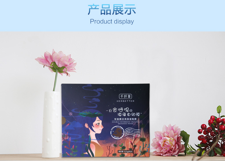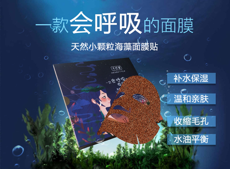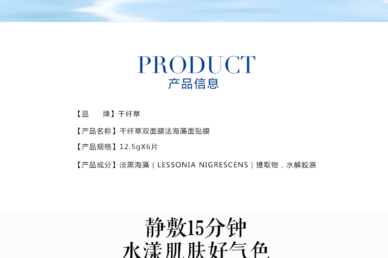 千纤草双面膜法海藻面贴膜6片装锁水保湿竹炭小颗粒海藻清洁面膜