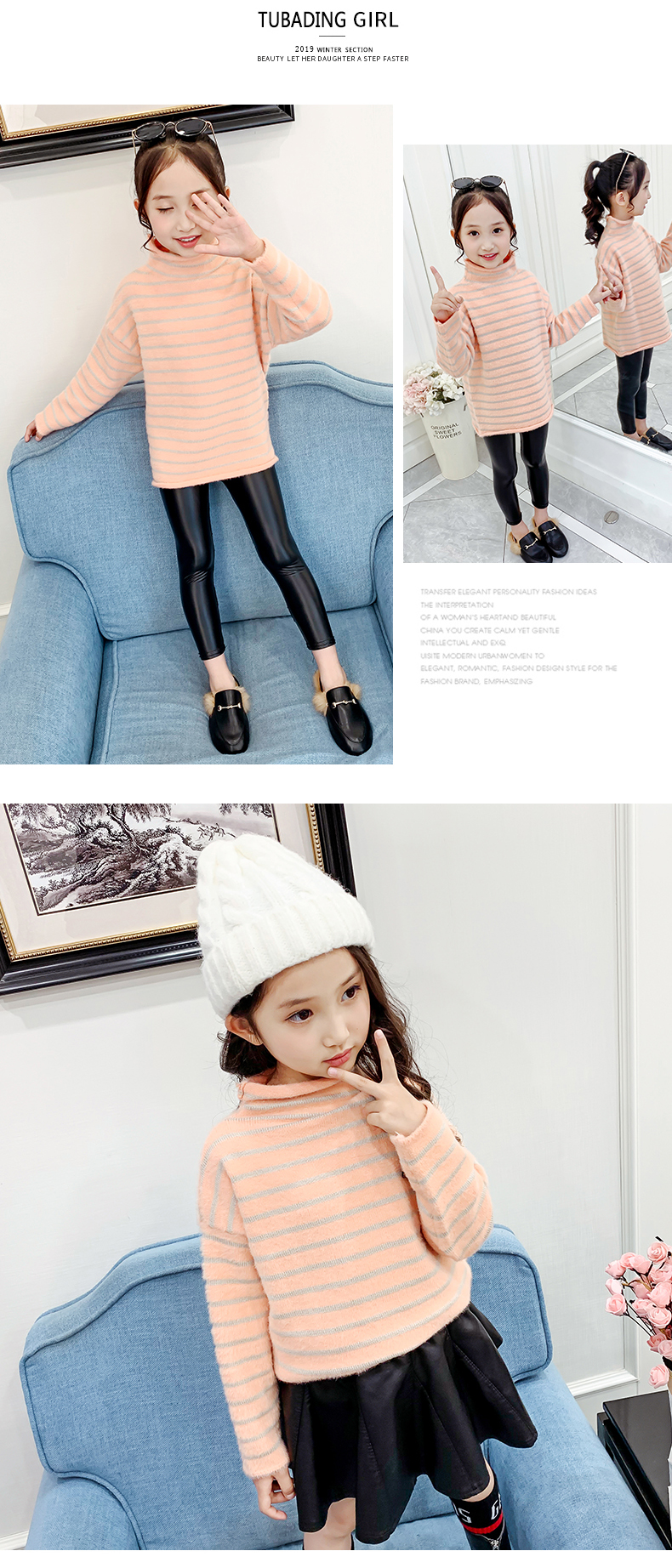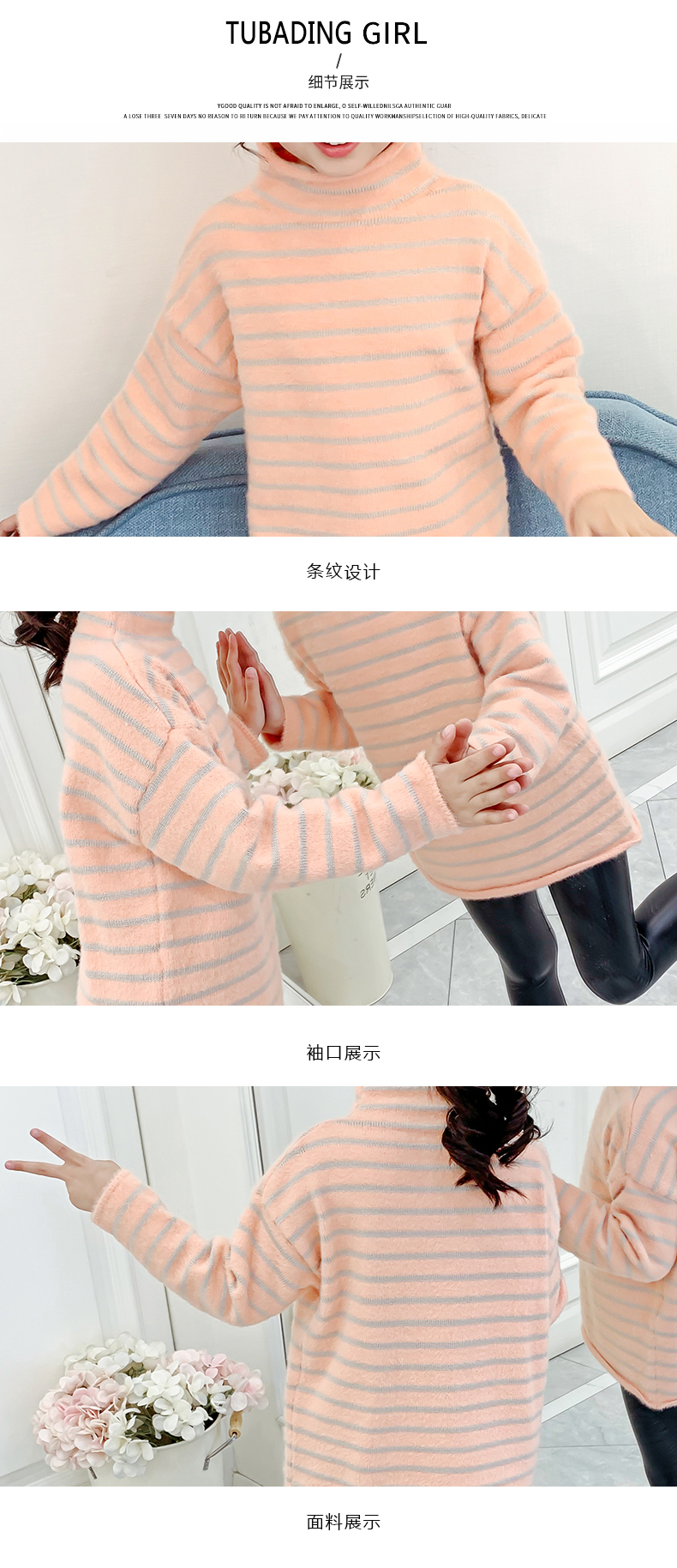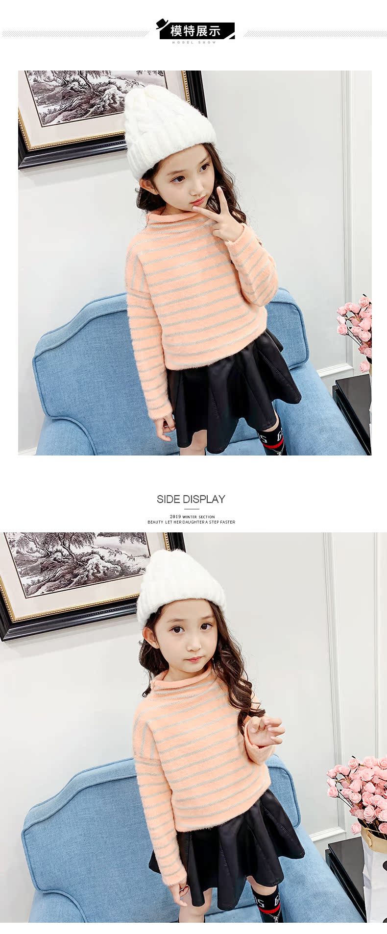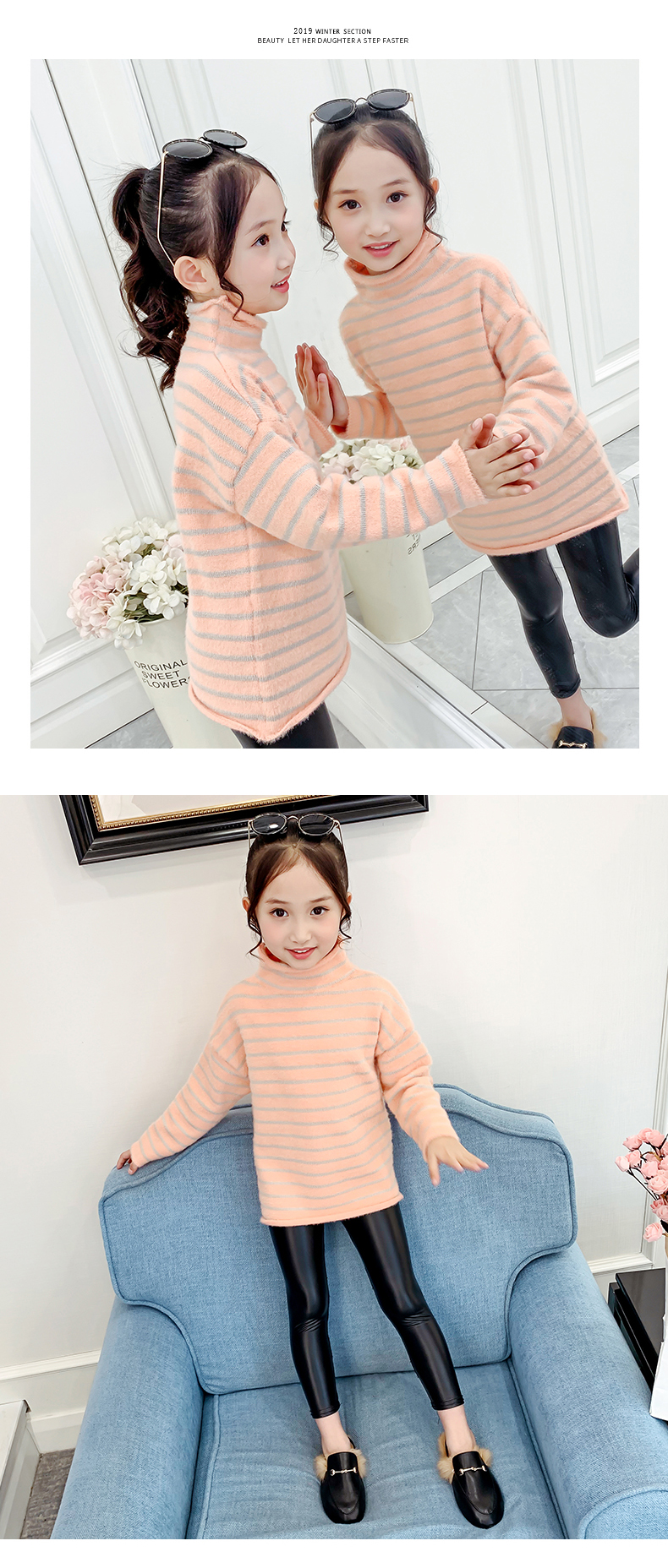 女童高领水貂绒毛衣2019新款秋冬洋气中大童儿童加厚保暖网红上衣