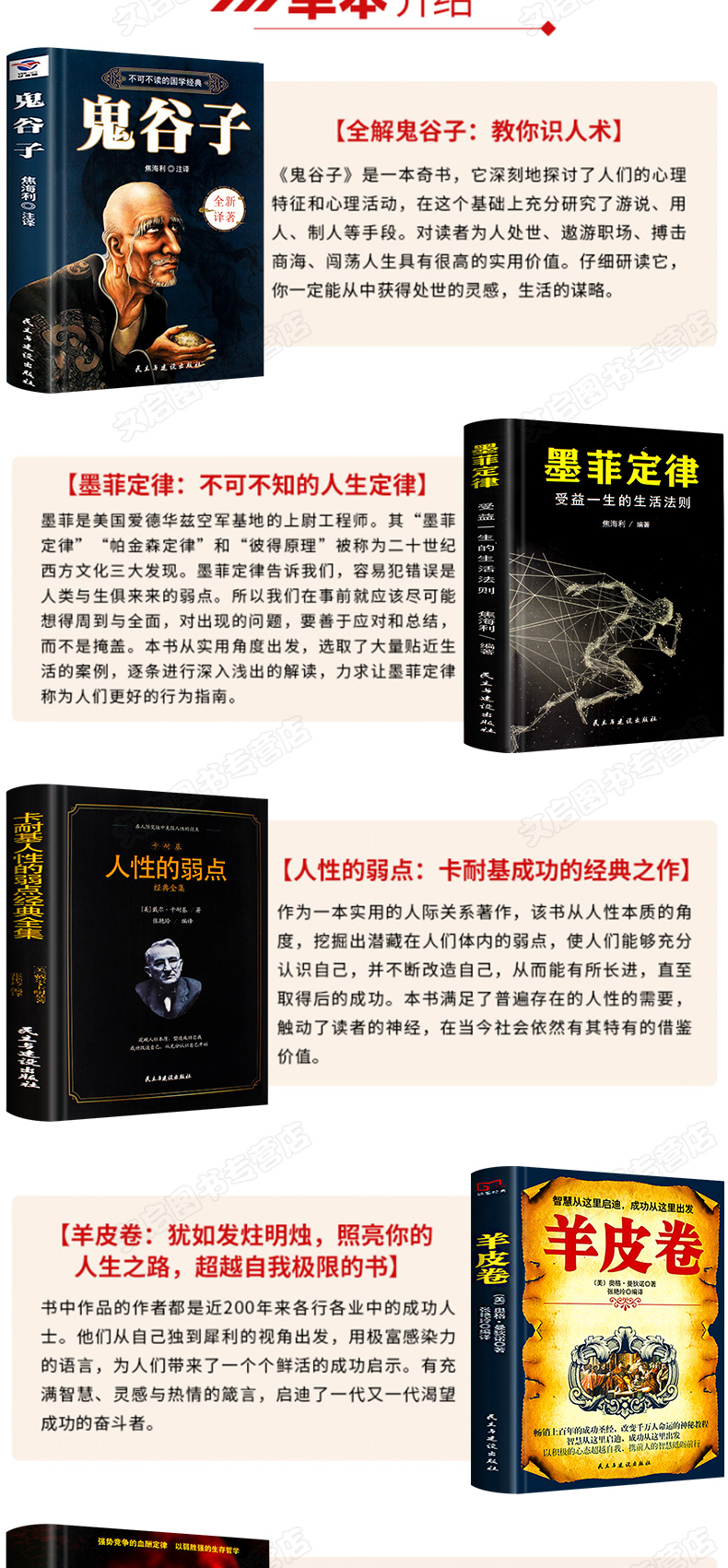 【全.网低价,书店一套108元,现在到手价只要16.8!】正版全套5本书籍,鬼谷子+墨菲定律+人性的弱点+羊皮卷+狼道,读完这5本书,让默默无闻的你胜读十年书,没有你进不了的圈子,让您受益一生!