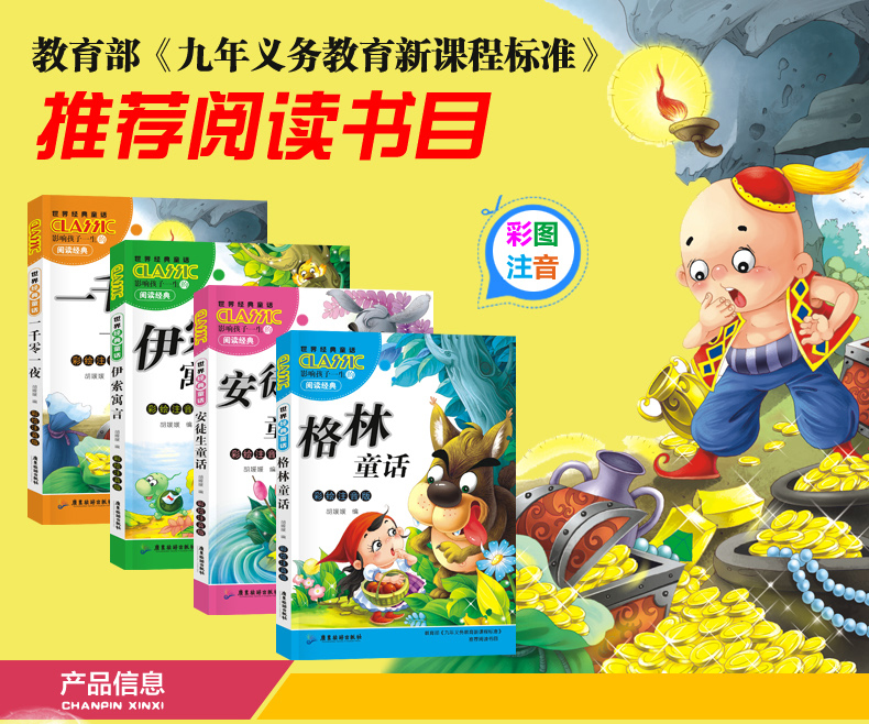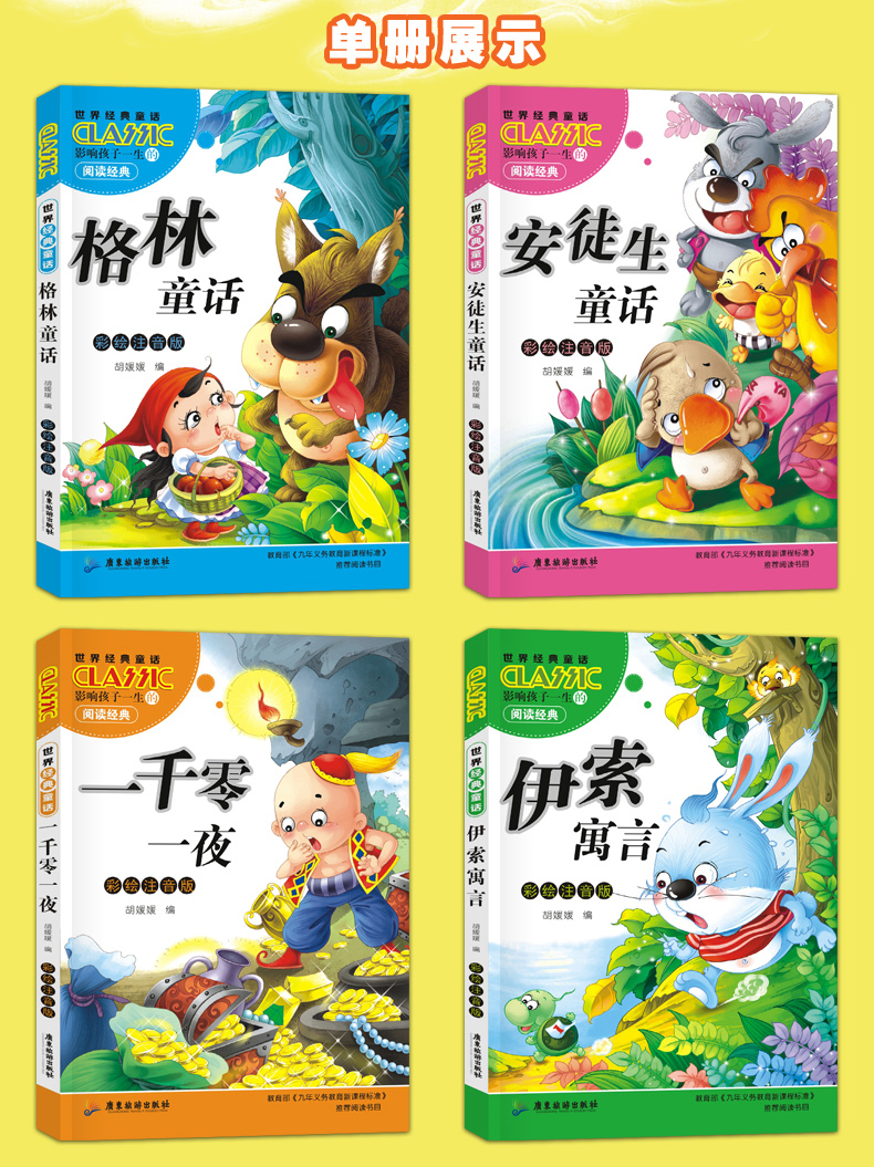 4册安徒生格林童话一千零一夜伊索寓言全集彩图注音版儿童故事书3-6-8-7-10-12周岁童话带拼音读物一二三年级小学生课外阅读书籍