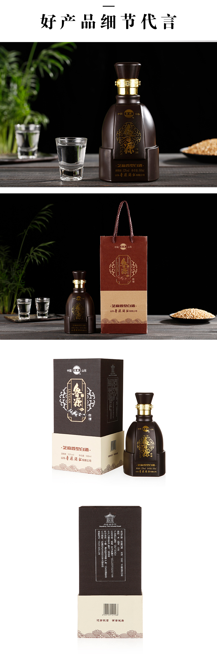 鲁源52度芝麻香型白酒500ml纯粮酿造高度山东白酒商务送礼盒瓶装