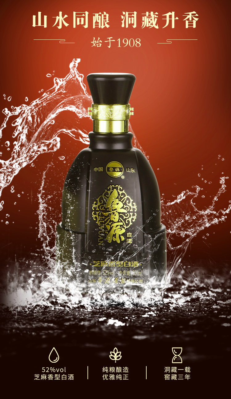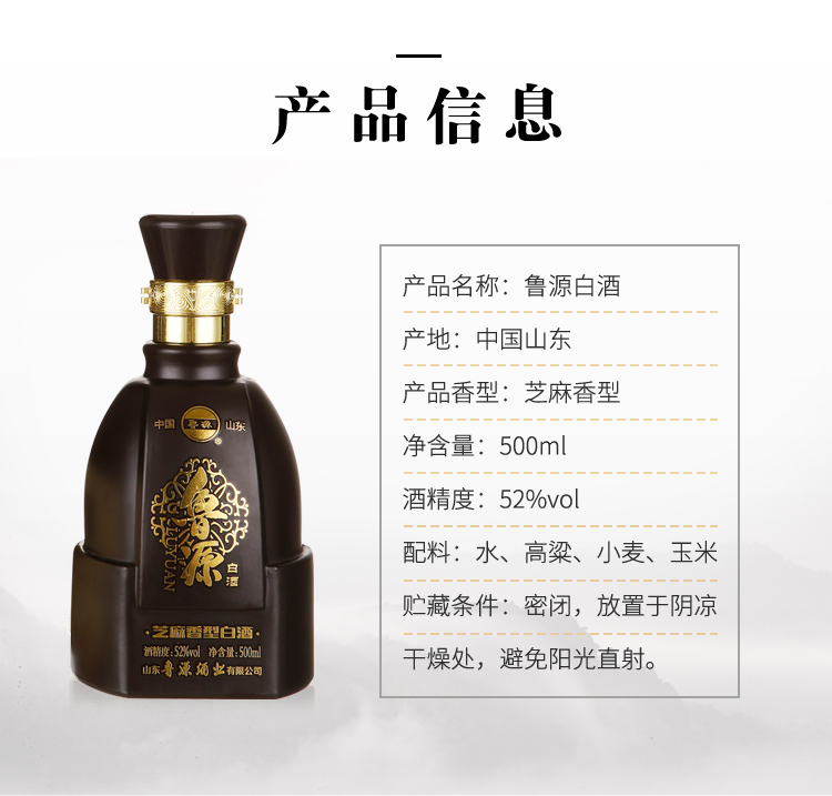 鲁源52度白酒500ml,山东白酒代表天然洞藏芝麻香,甄选黑龙江红高粱,坚守纯粮酿造,恪守传统工艺,送亲朋好友优选