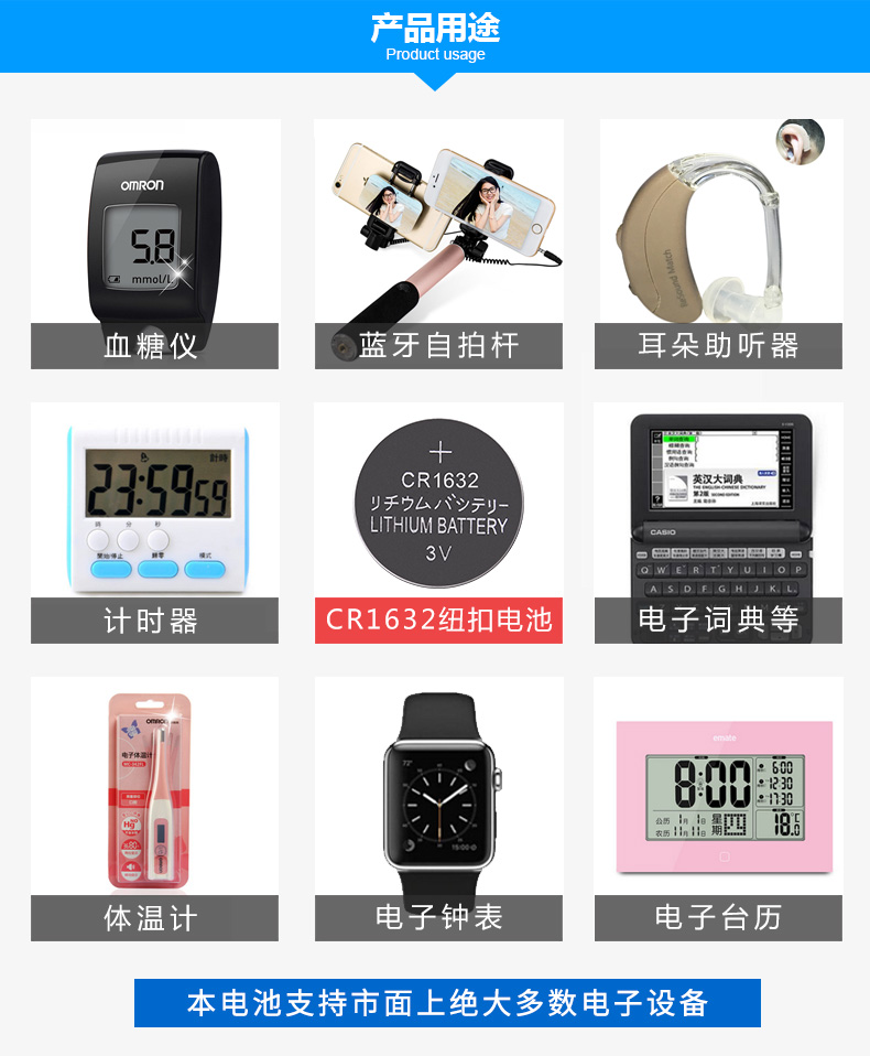 5粒装纽扣电池,小身材大用处,持久耐用,适用范围广,无汞环保,电池没电,在家轻松搞定!(适用范围:遥控器,助听器,血糖仪,电子体温计,防丢器,数码相框等)