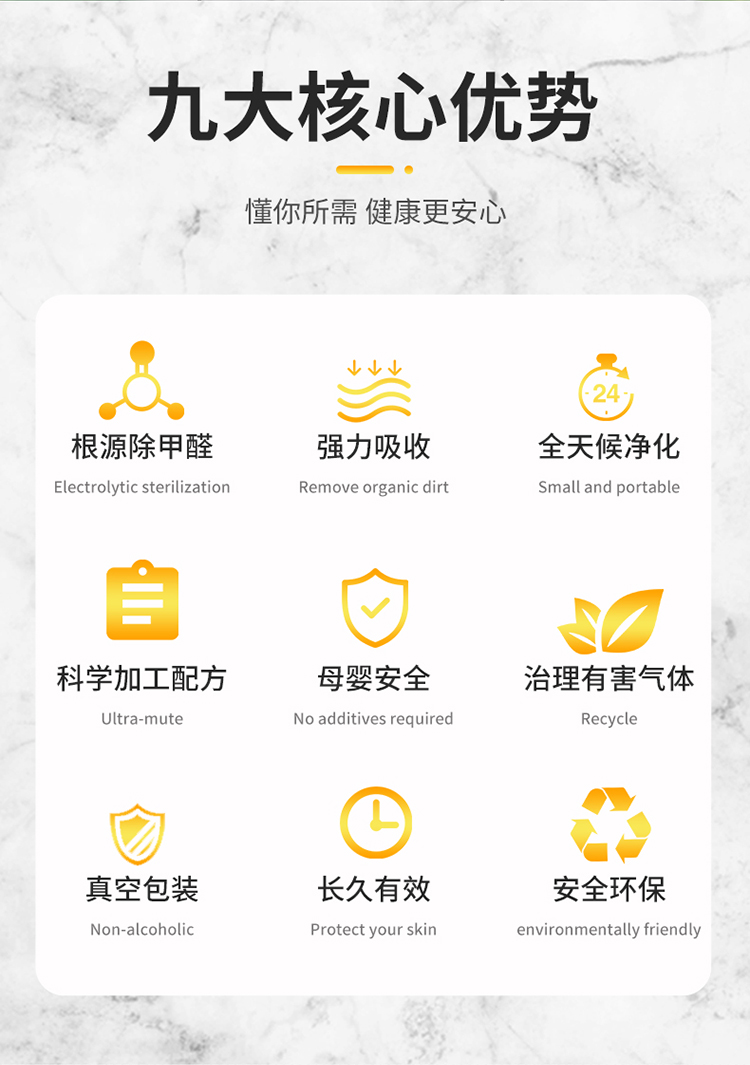 专用汽车冰箱,食品柜,鞋,房间等室内超强空气净化专家,真正适应中国复杂空气,经过国家超高标准检测防霉防潮,无二次污染,净化异味,更透气,有效除甲醛,干净卫生操作方便,防伪标识。