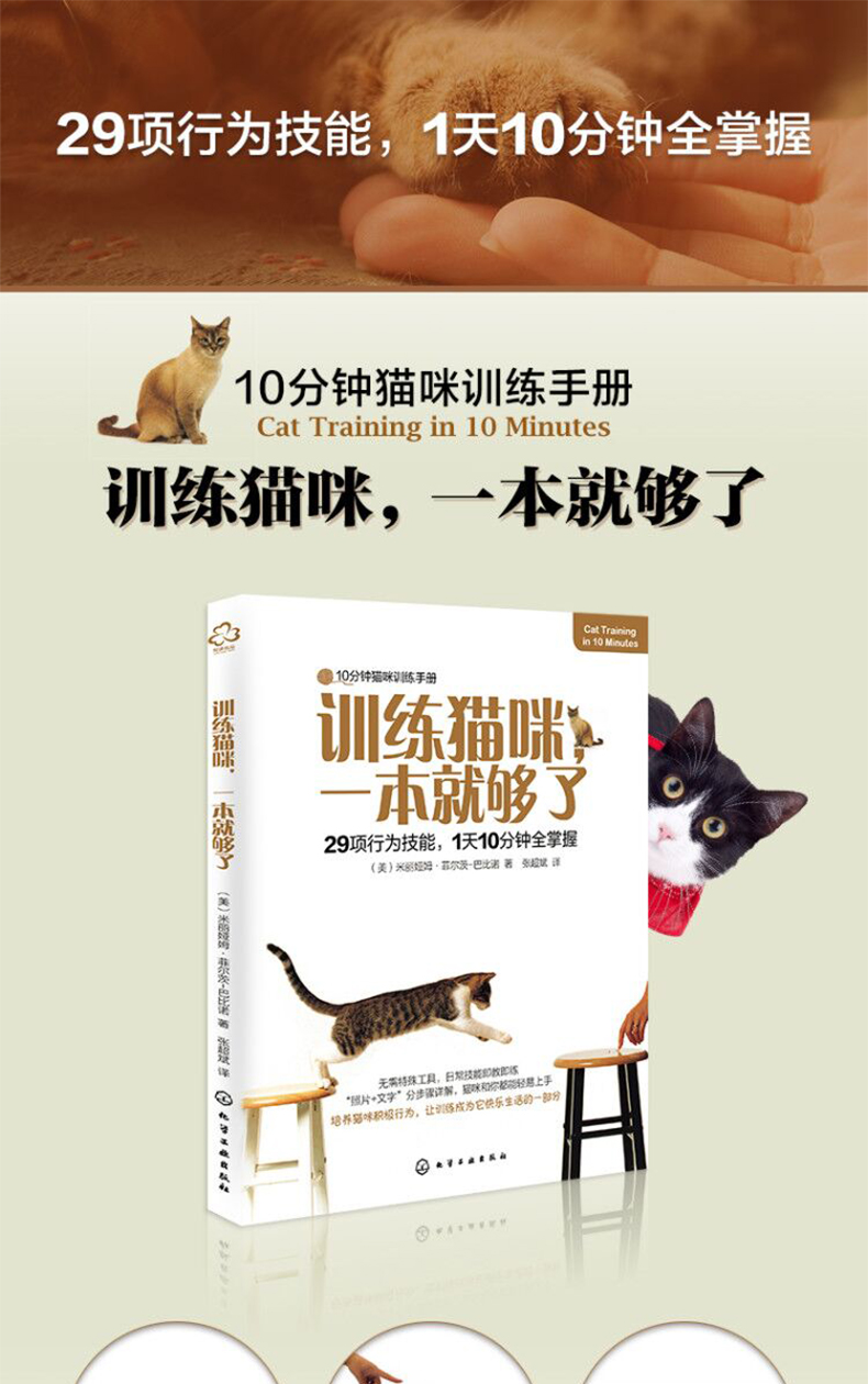 10分钟猫咪训练手册,一天十分钟掌握29项萌宠行为技能,米丽娅姆·菲尔茨-巴比诺30多年的猫咪沟通训练经验,让TA健康乖巧快乐成长,谁都能轻松上手的猫咪训练指南哦
