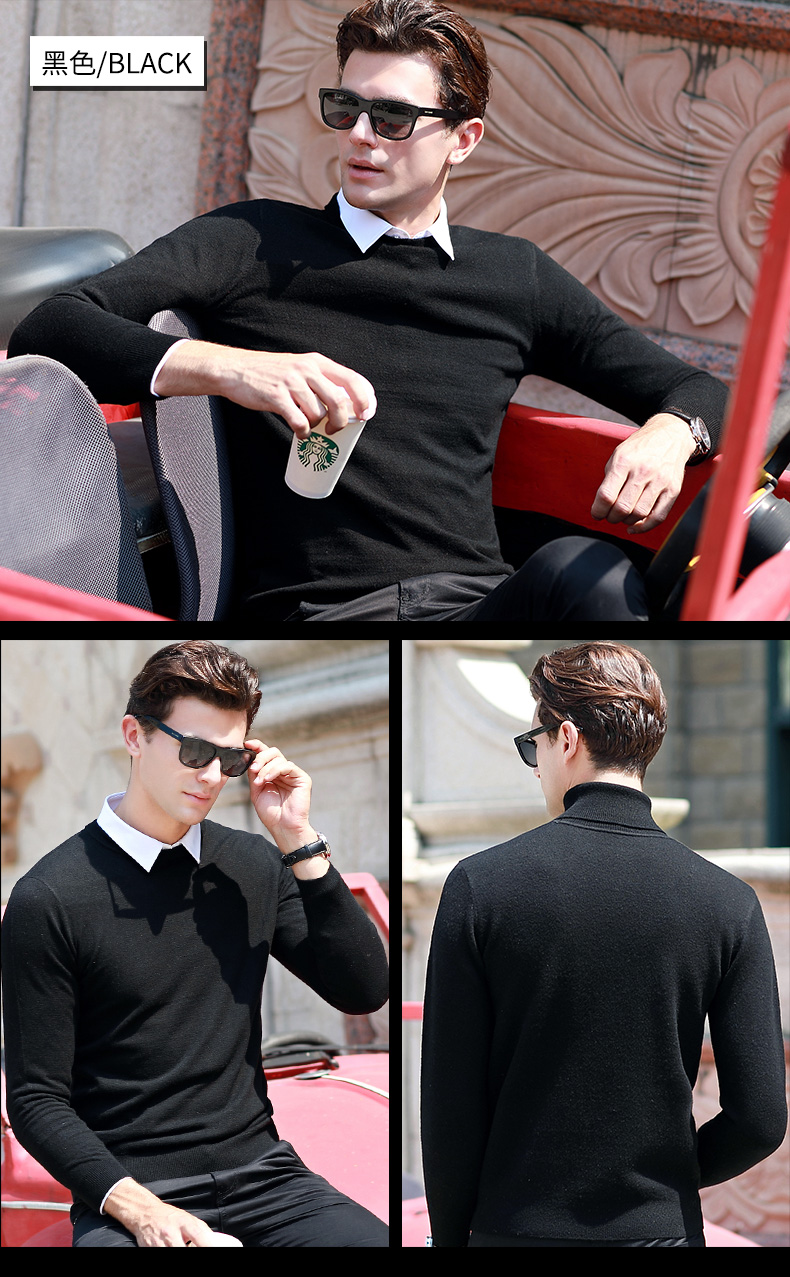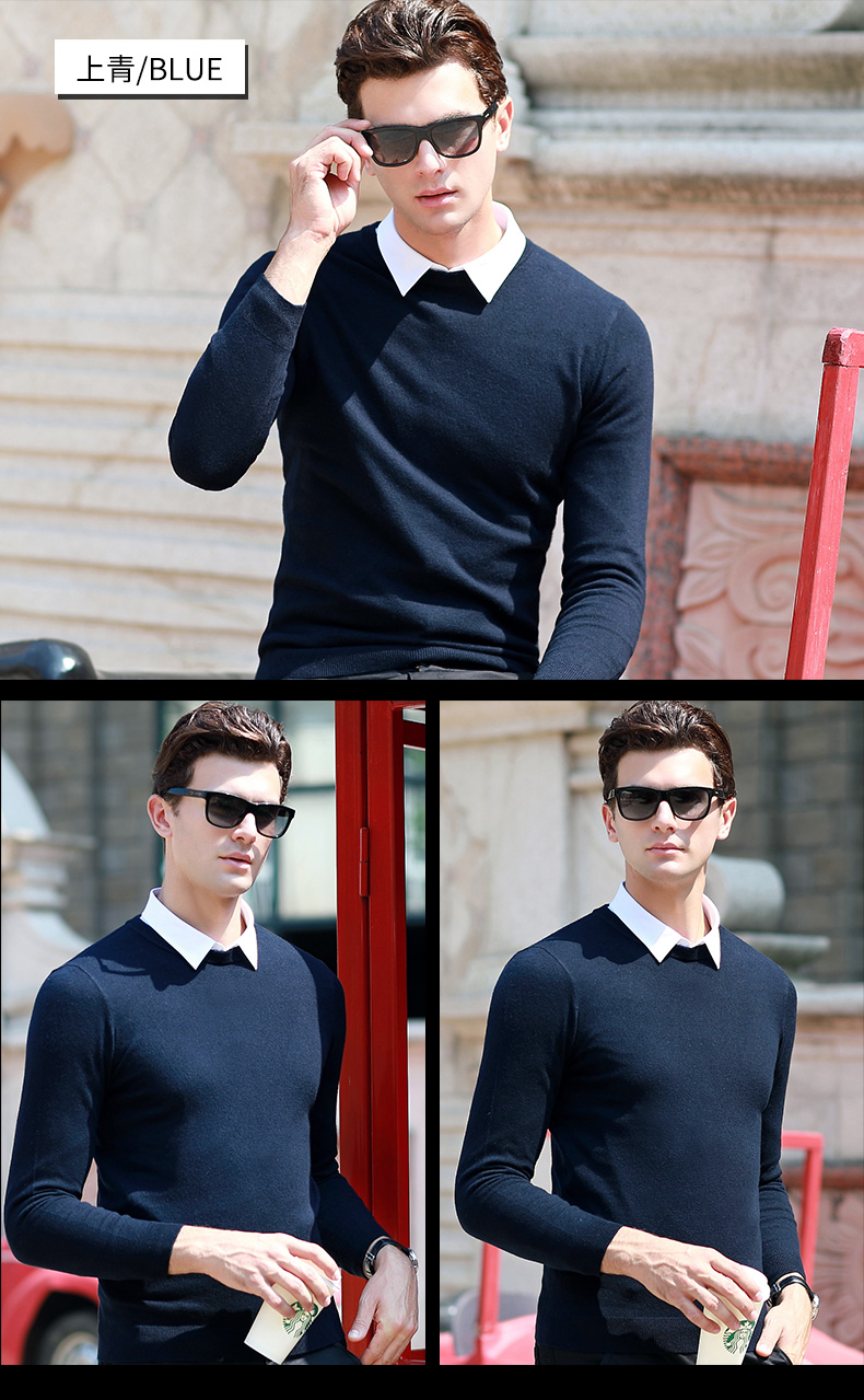 官方旗舰店鄂尔多斯市产秋冬季长袖毛衣男士韩版修身薄款圆领打底