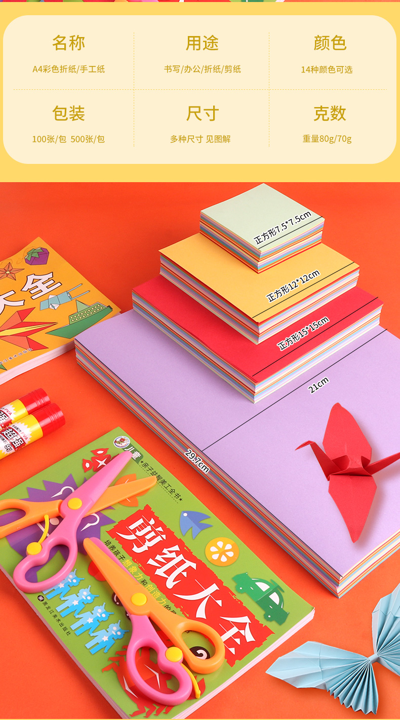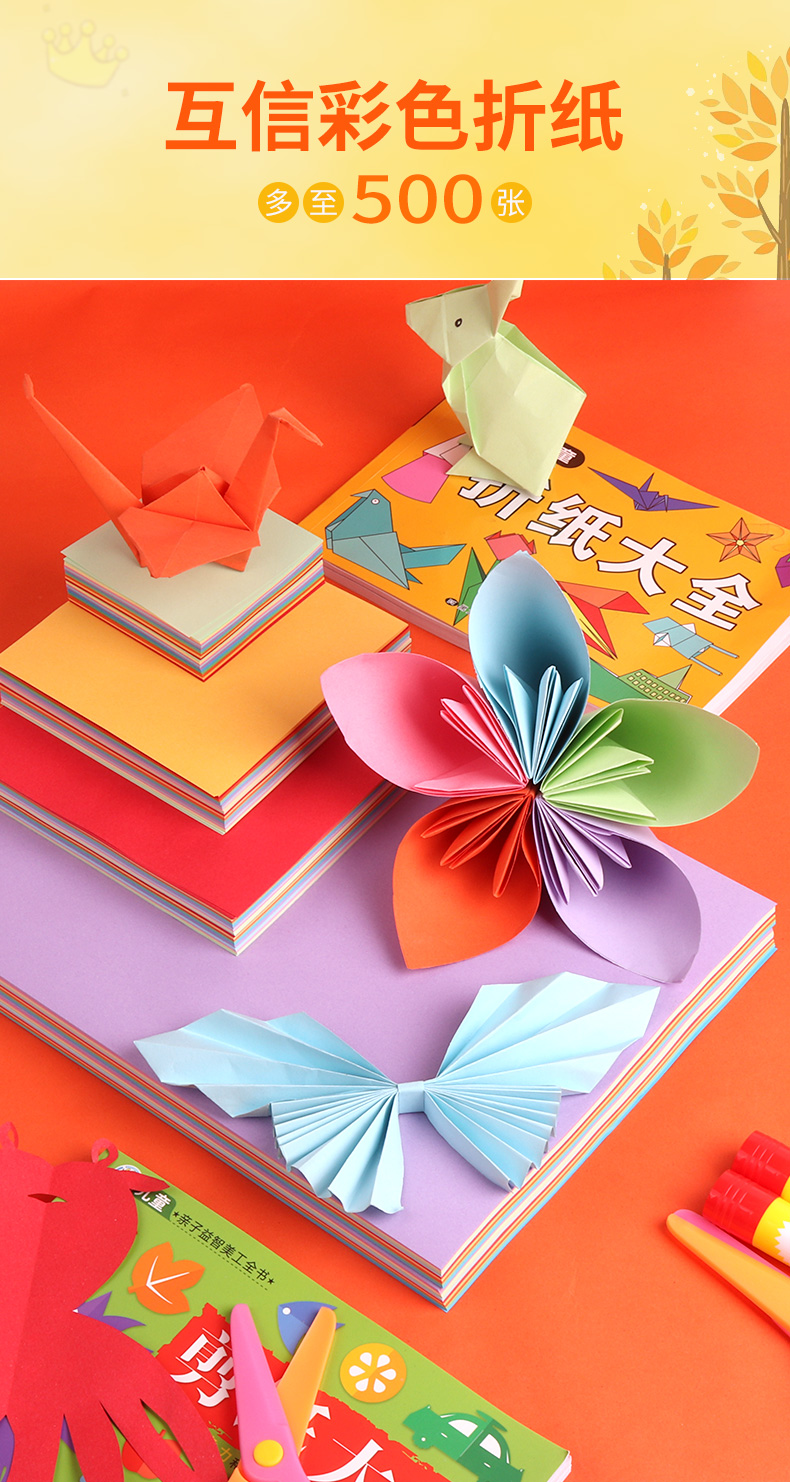 互信彩色彩纸手工纸剪纸,手工纸材料,算数草稿纸,儿童幼儿园千纸鹤,手工大张制作玫瑰花DIY折纸书