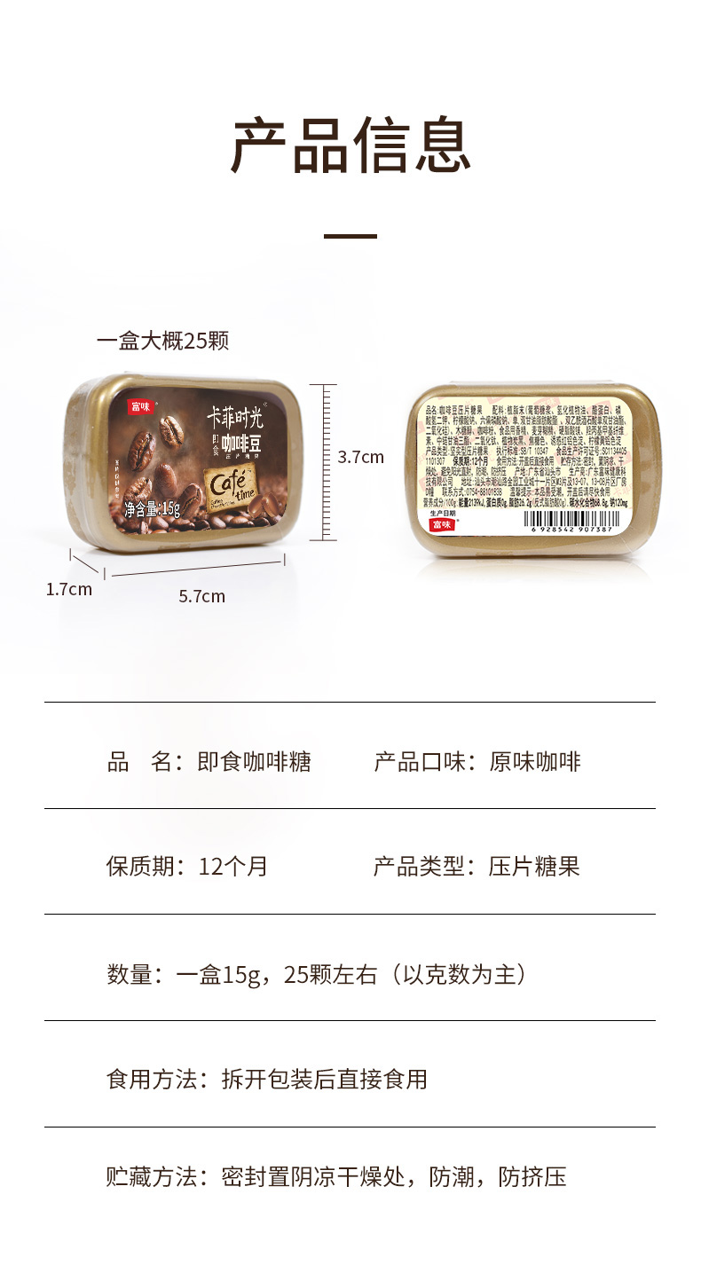 富味咖啡糖 醇香可嚼即食咖啡豆可嚼压片糖香浓15g8盒