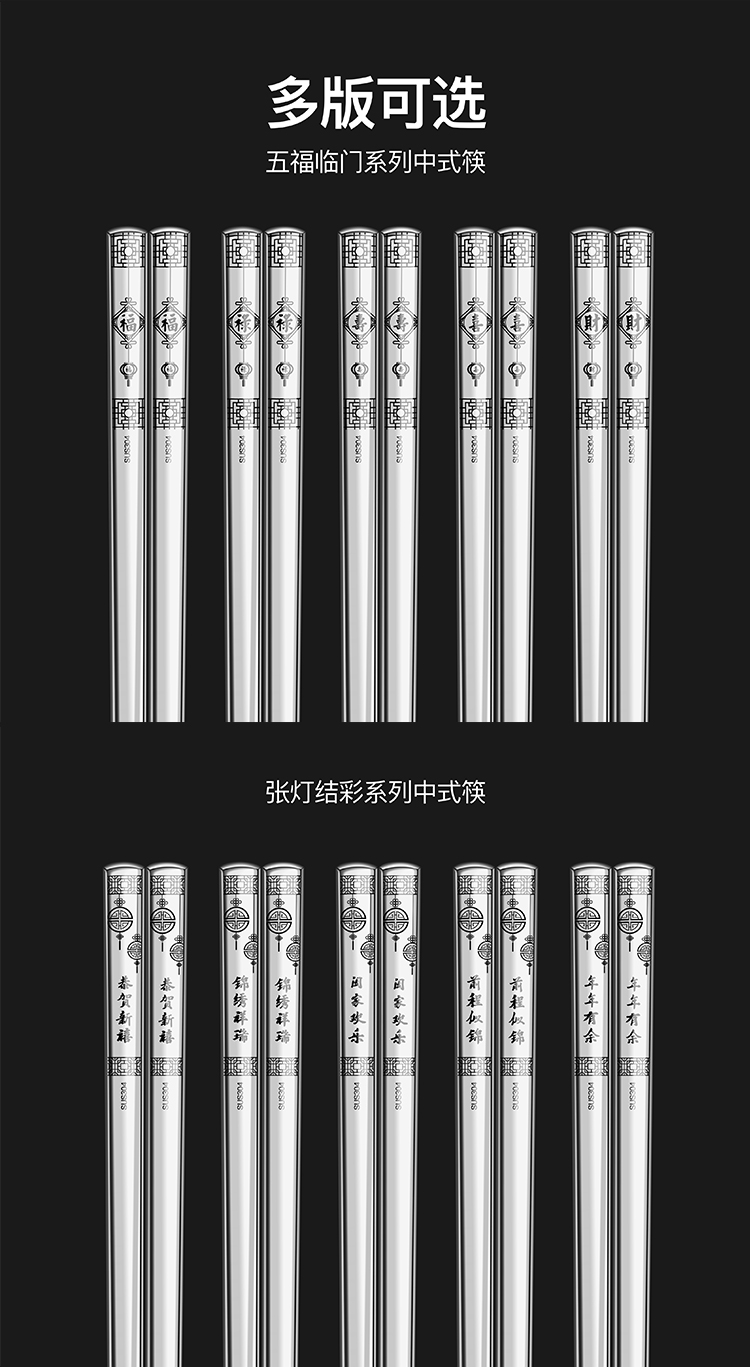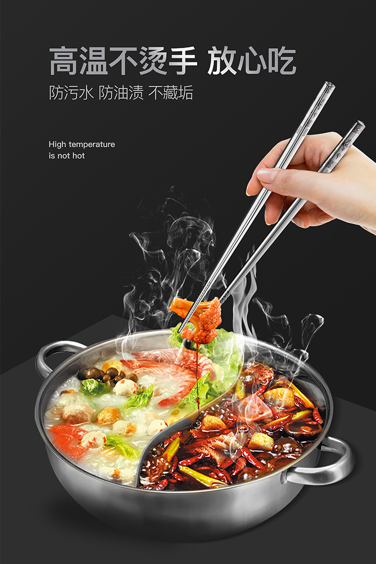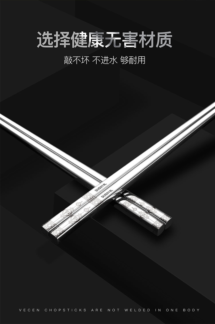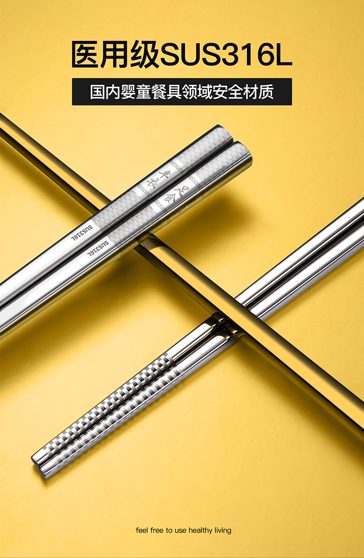 316不锈钢筷子家用高档防滑防霉耐高温304方形金属银快子5双套装