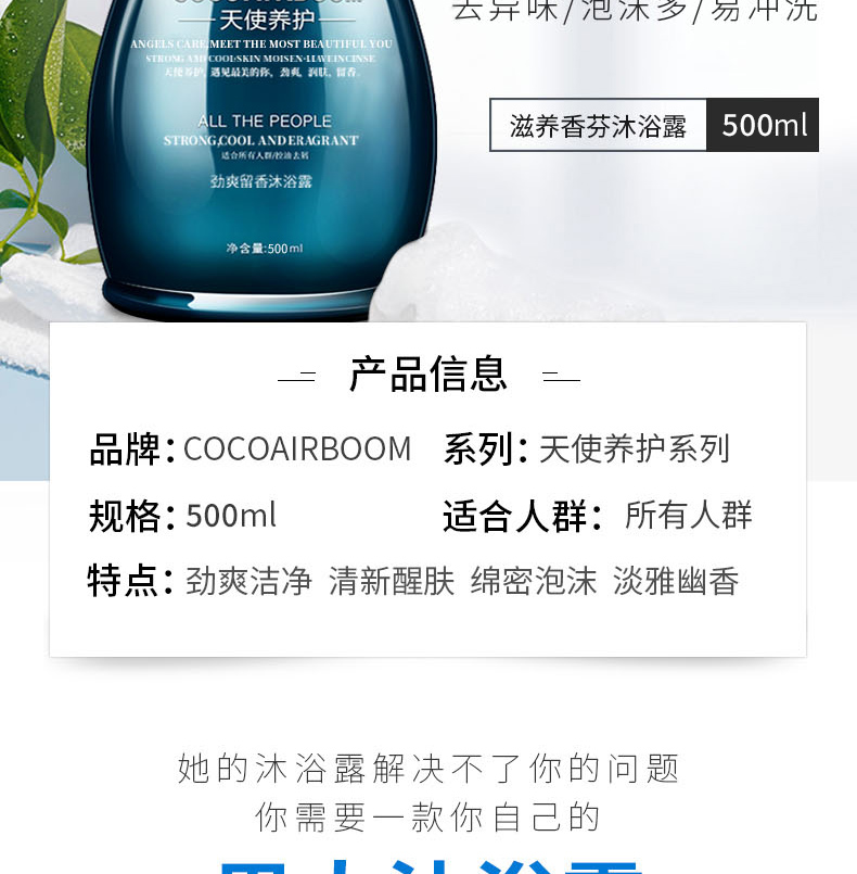 COCOAIRBOOM天使养护型沐浴露,水润保湿不油腻,持久留香,撩人神器,滋养香氛男士经典沐浴露相信你会喜欢!
