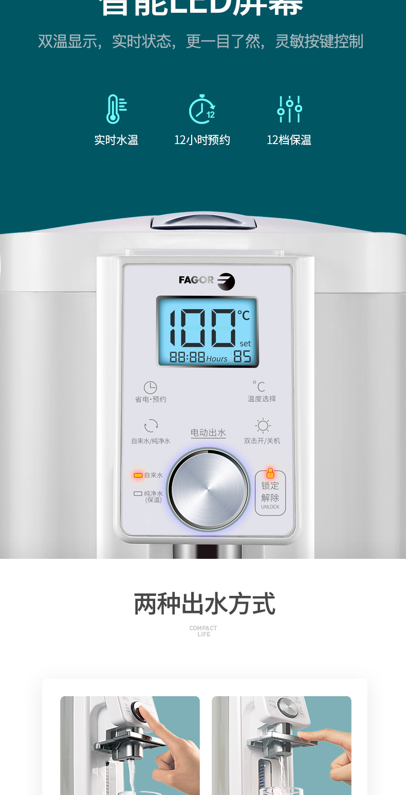 法格全自动电热水瓶,大屏幕双温显示,多段恒温,风凉降温,缺水提示,童锁设计,除氧沸腾,接水清洗更方便,新品促销,真的超级优惠,赶紧抢购吧!