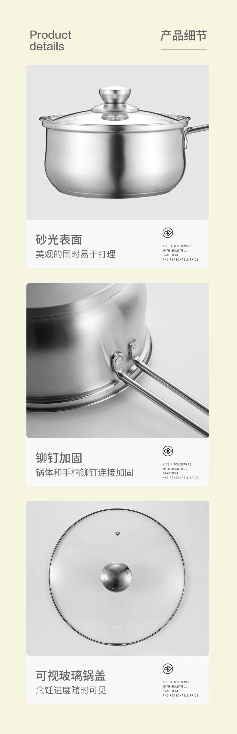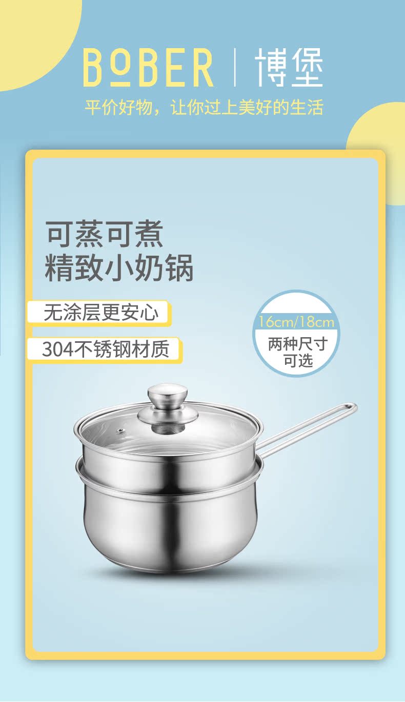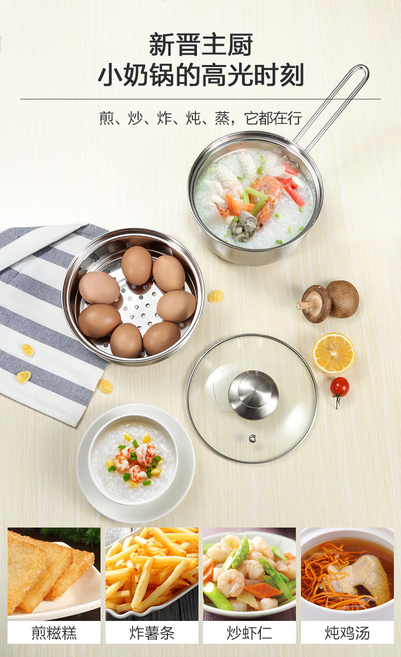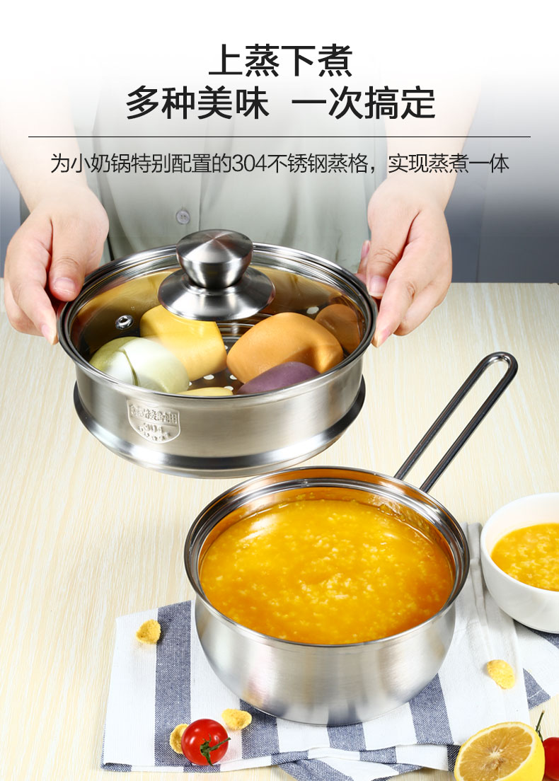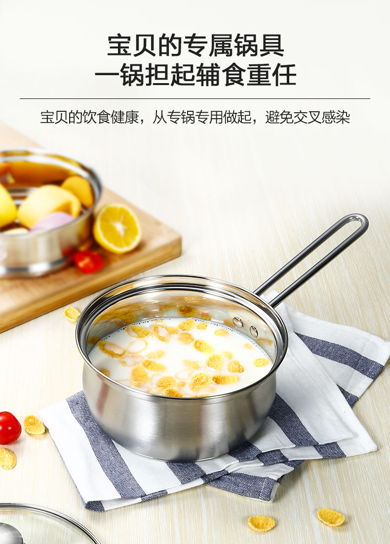 新款304不锈钢复底泡面锅宝宝辅食锅家用婴儿小锅煎煮热锅小奶锅