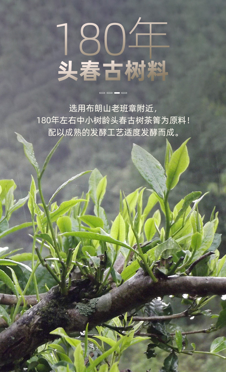 180年布朗山古树茶,泉水发酵,古法传承,回归本味,口感醇厚,茶气十足,汤色红浓透亮,唇齿留香,越存越好喝,包装大气典雅,送礼收藏之选.