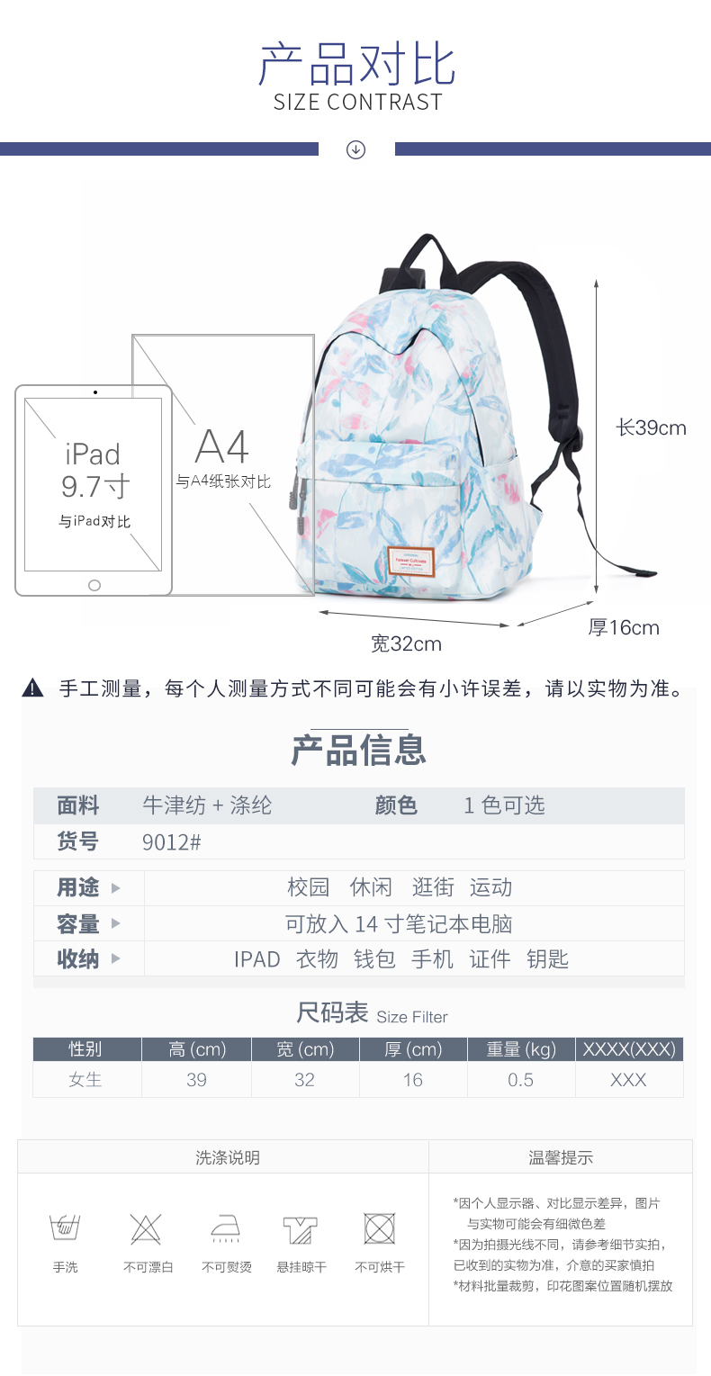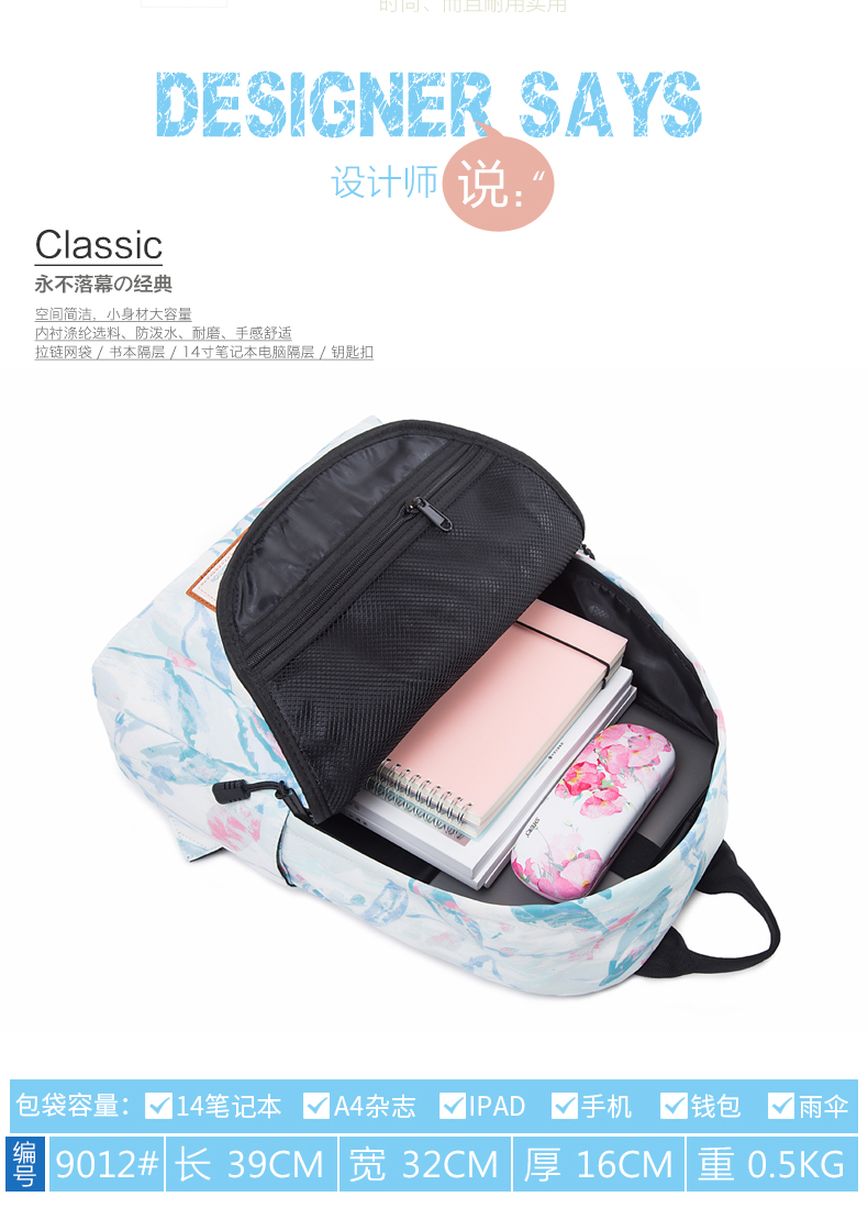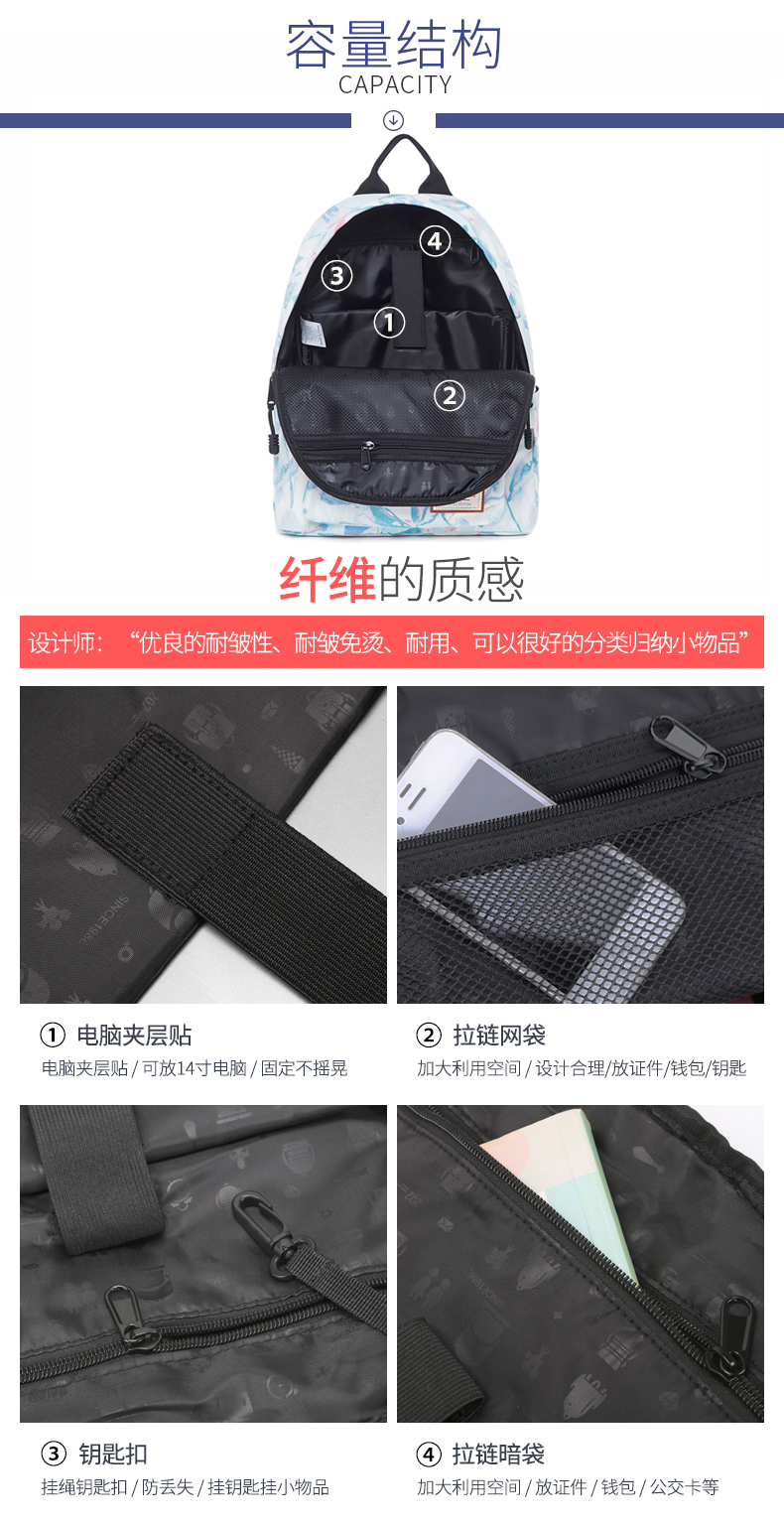 校园简约文艺背包印花双肩包,亲肤手感好,防泼水高精度,面料耐皱有弹性。