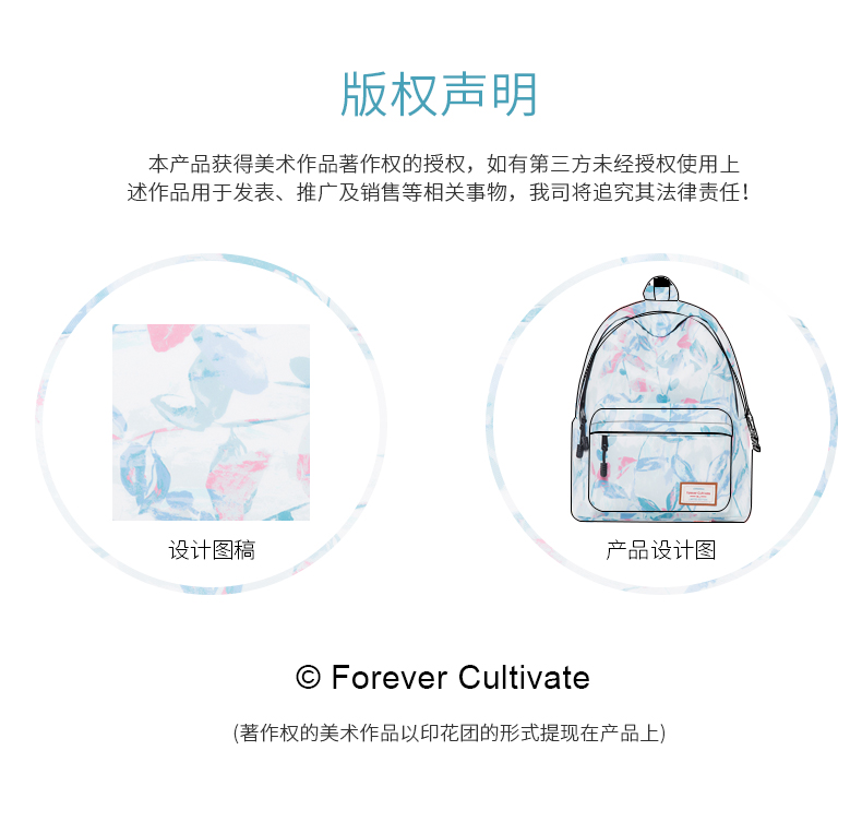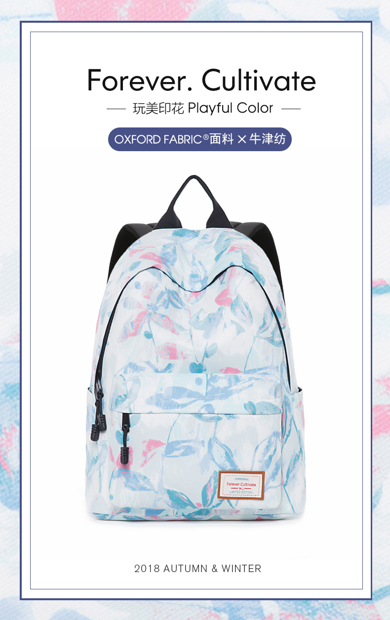 Forever cultivate大学生书包女韩版校园 简约文艺背包印花双肩包