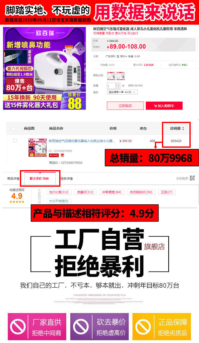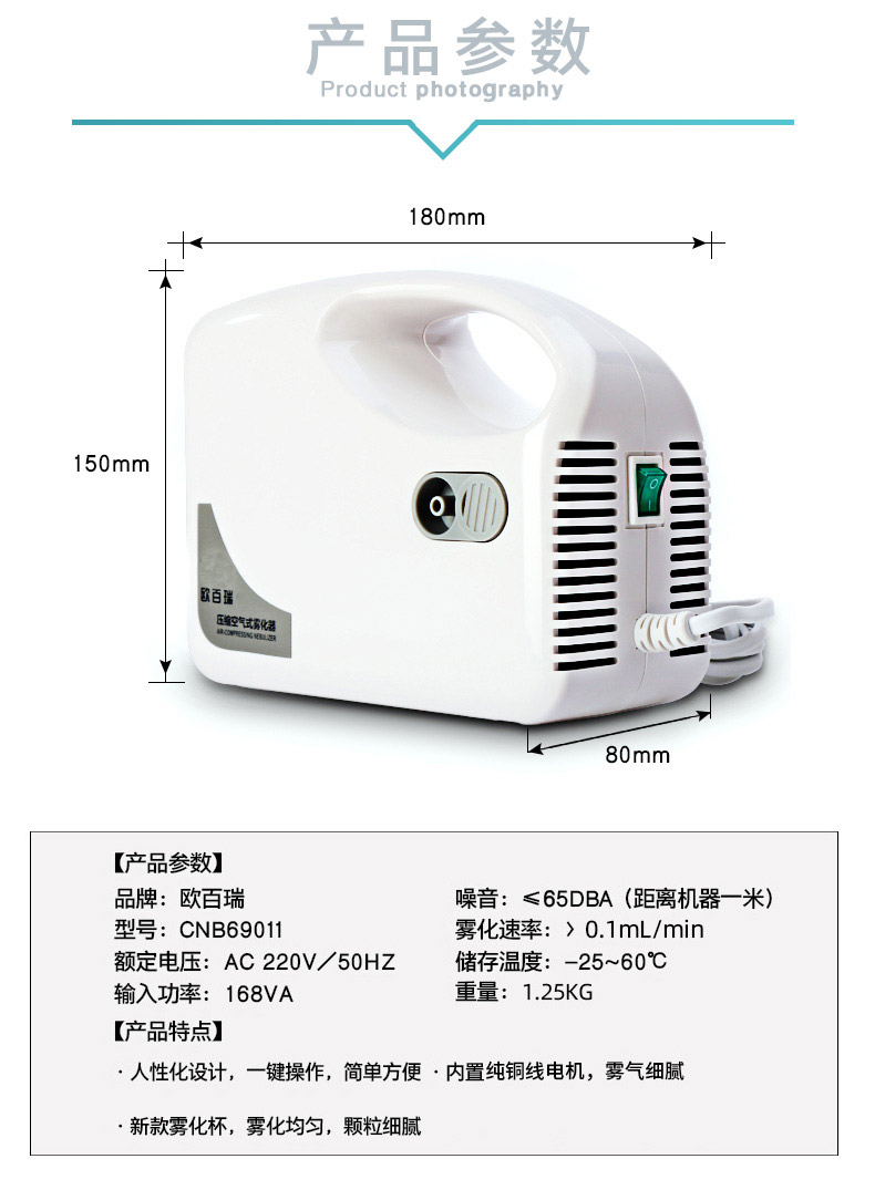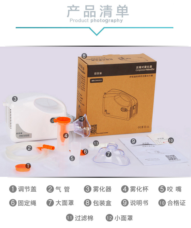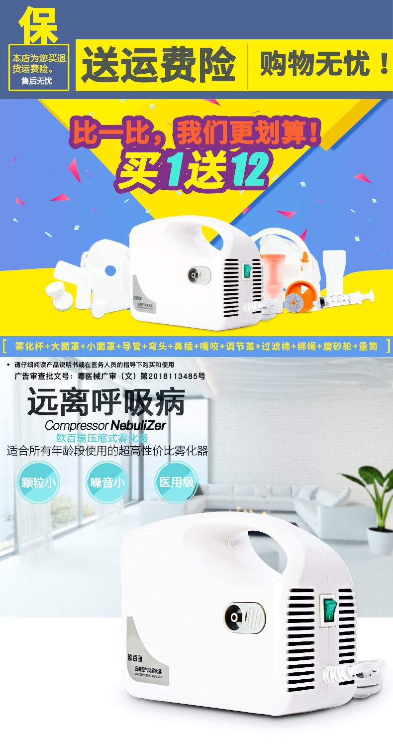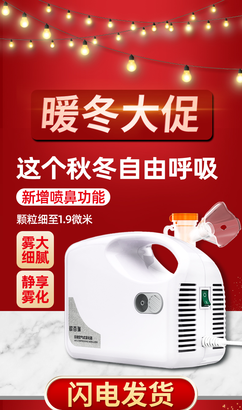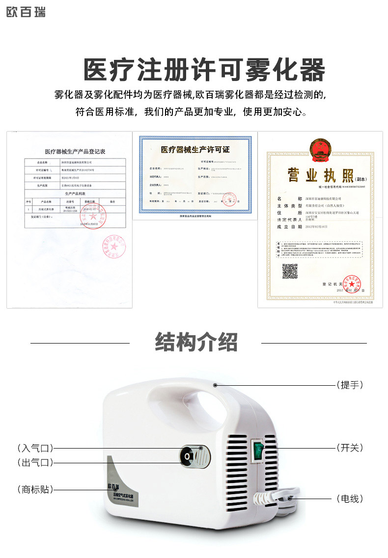 欧百瑞空气压缩式雾化器成人化痰止咳小儿雾化机儿童医用家用清肺