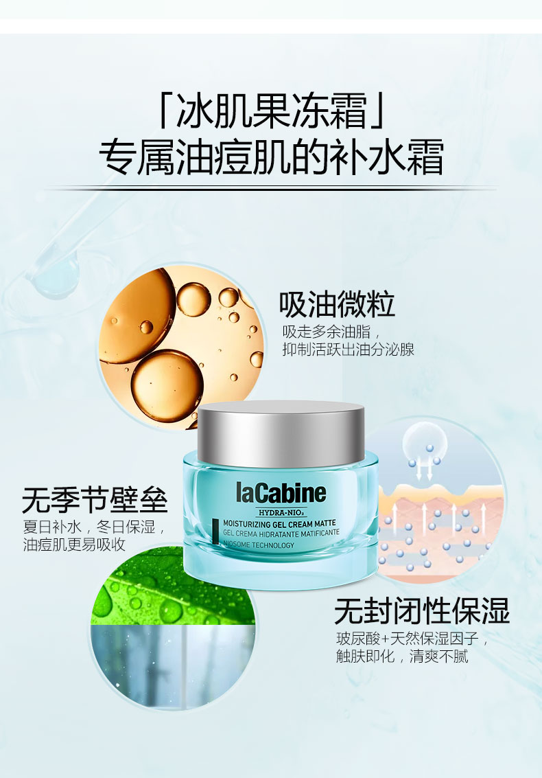 第二件0元!LaCabine水分子平衡保湿凝霜,网红热荐,专属油痘肌的补水霜,高效补水,收细毛孔,控油哑光,从而减少痘痘生成,让皮肤更加细腻柔滑【赠运费险】