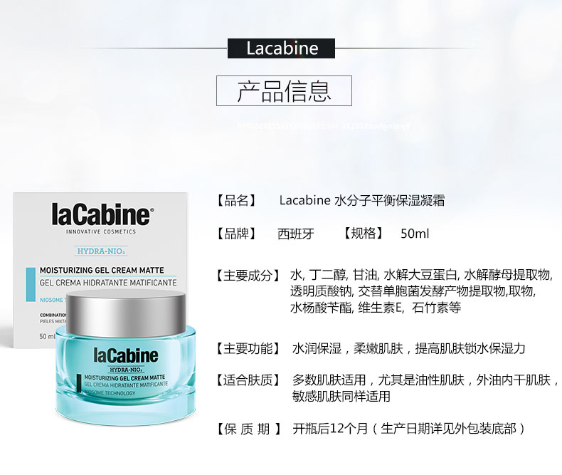 lacabine西班牙面霜补水保湿控油收缩毛孔润肤滋养水润凝霜50ml