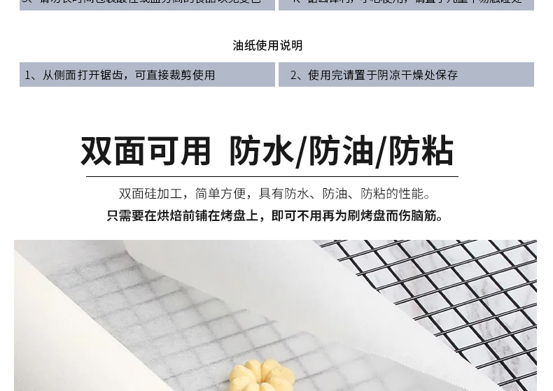 【买2送1】加厚双面烤盘吸油纸,食品接触纸,宝宝辅食家用,烤蒸煎煮,样样精通,220度耐高温,防油防粘防焦,健康环保,家庭烘焙好帮手【赠运费险】