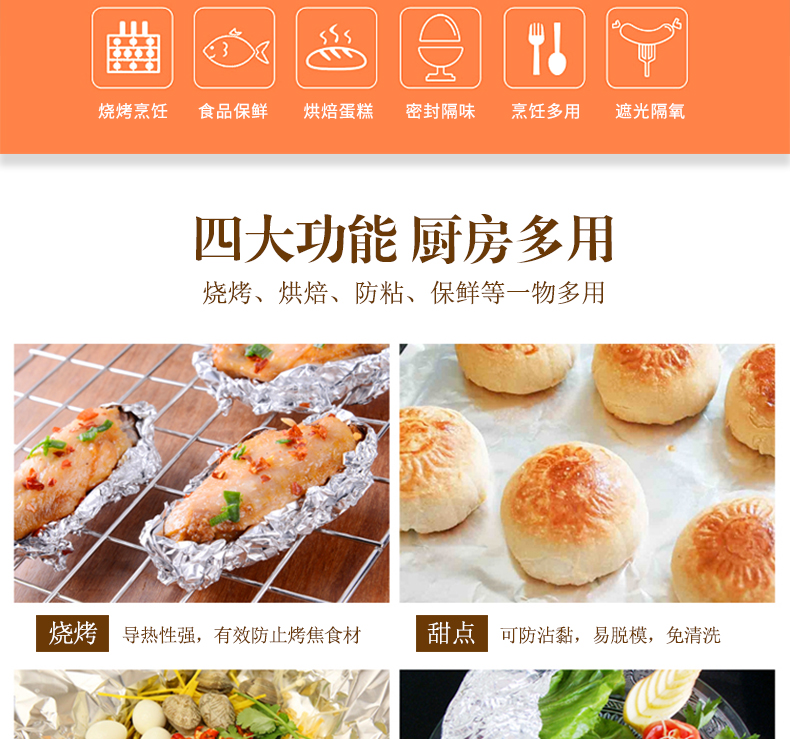 【买2送1】烘焙烧烤加厚锡箔纸,耐高温,耐热性强,受热均匀,双面可用,防油防沾,使用广泛,尤其是在烘焙烧烤中不可少的好帮手~